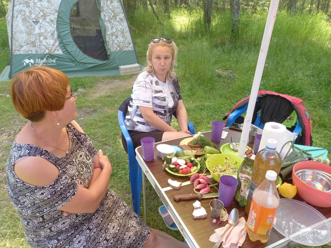 Итак, мы вчетвером в прошлогоднем составе. Народу в Мурино, на удивление, немного. Выбрали для лагеря небольшую тупиковую поляну в кедраче и довольно густых зарослях, но при этом на самом берегу. Обработали саму поляну, одежду, машины и палатки от клеща. По приезду было солнечно, тепло и относительно безветрено. Даже САПы плавали Байкал в этот раз относительно чистый. Воду для кипячения брали прямо с берега, за питьевой уходили на лодке метров на 200. Однако, Байкал на то и Байкал, чтобы менять погоду по 20 раз за день, причём очень резко. Сначала налетел штормовой ветер. Синий китайский тент оторвался с десяти растяжек, перевернул зонт и стол со всем содержимым. Мобибы стояли, как памятники. Потом, как из душа хлынул ледяной ливень. Баню в первый день топить не планировали, но пришлось.