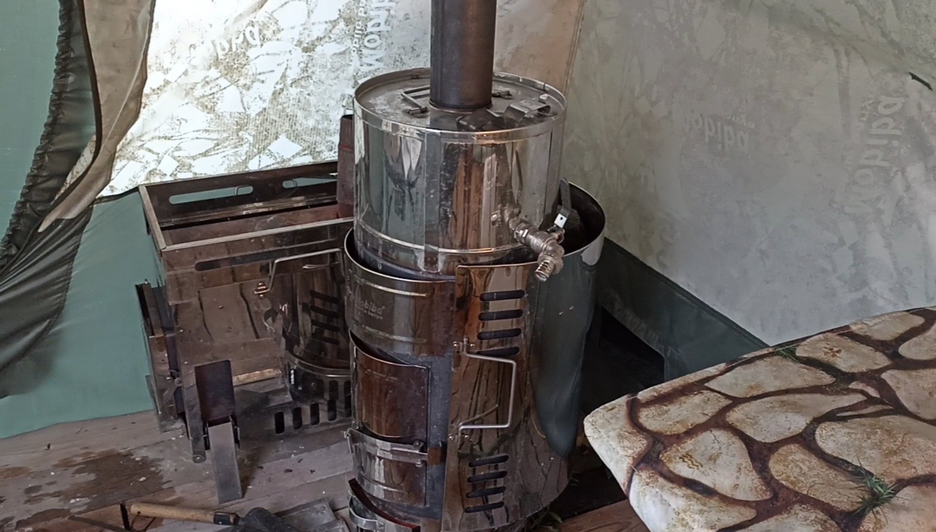 Чем и хорошо такая баня на участке дома или сада, это как пробник, можешь менять габариты бани(палатки) и печи,паровая или суховоздушка. Нет привязки к месту(земле) на участке, можешь развернуть,поставить как хочешь и подобрать свой размер и пар.