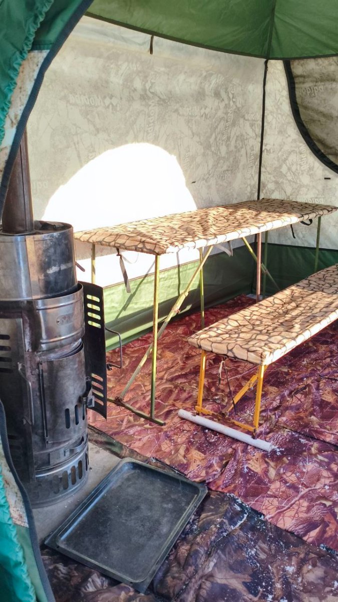 Снег- это кайф.. А вот -25 уже не очень)). Хотя наверное со вторым слоем вытянет.. Я тут еще проблемку себе нашел: палатка стоит на утеплённом подиуме под бассейн и все бы хорошо- полы босиком прямо теплые, но: нет уклона, а в минусовую на стенках хорошо так конденсируется и собирается приличная лужа на полу.. В итоге периодически собираю автомобильным полотенцем в ведро, за день сегодня литров 5-6 точно набралось.