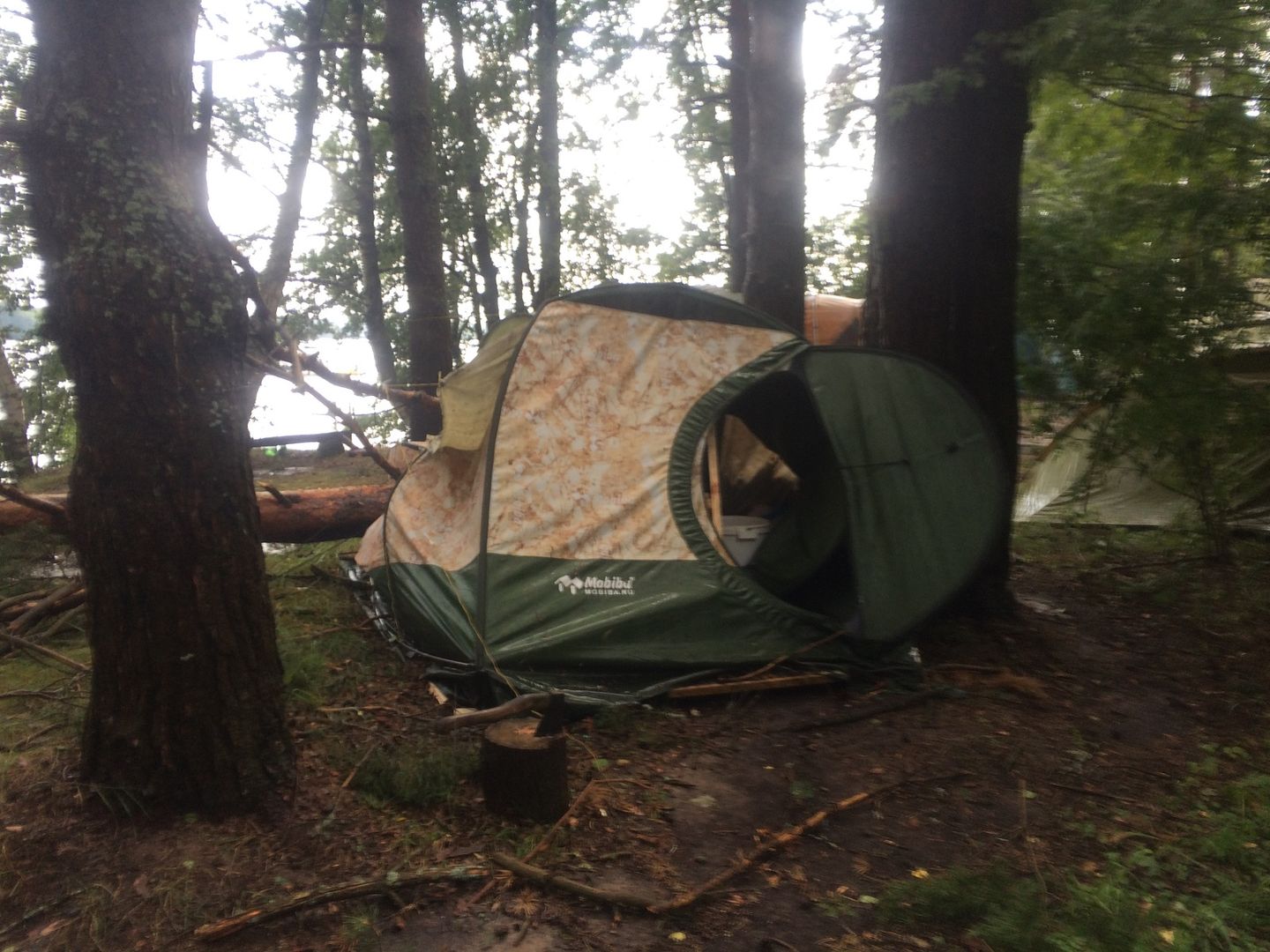 Уважаемые форумчане! Я Вам уже неоднократно говорил, что перед установкой палатки нужно тщательно исследовать окружающую ситуацию. Если решили ставить палатку под деревьями, знайте, что любое из них может Вас убить спящими. Палатка с таким весом не справится. Если упадет крупный ствол дерева, то прихлопнет спящими. Могут падать целиком деревья, если почва рыхлая песчаная. Сосны часто растут в таких местах по берегам водоемов. Может крупная ветка размером с дерево отломиться. Трудно все описать. Все обнюхайте, осмотрите тщательно. Головы вверх, головы вниз. Если есть хоть малейшие подозрения, то ставьте в другое место и других предупредите.