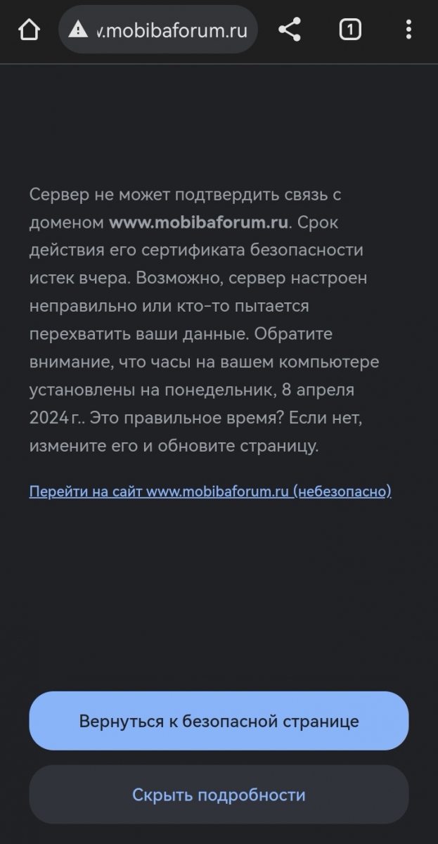 При открытии форума браузер ругается на сертификат безопасности.