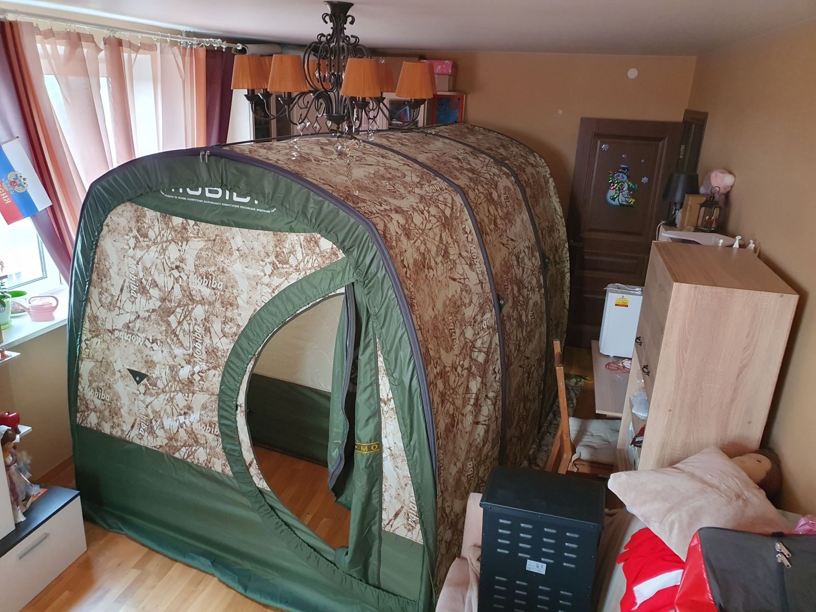 С разборкой палатки трудностей также не возникло, даже в узкой комнате. Единственное, пока не понял как максимально компактно сложить сам тент, да ещё и так чтобы при вытаскивания из сумки, все углы и молнии, были уже готовы к установке каркаса , то есть чтобы долго их не искать. Свернул кое как и с небольшими незапланированными усилиями, затолкал обратно в сумку. В этом пункте и РБ 200 и МБ 15 однозначно выигрывают)