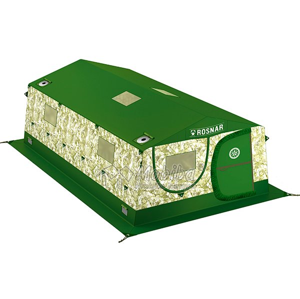 «РОСНАР Р-636» двухслойная армейская палатка для экспедиций и длительного проживания в полевых условиях при любой погоде. Может выполнять функции мобильной бани. Жилая отапливаемая площадь: 21,5 кв.м. Вместимость: 9-14 чел.