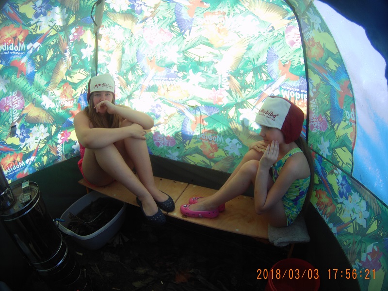 Паримся несколько часов. Хорошо, плотно. Ловить максимумы температур на Жиге получается всё лучше и лучше. Выскакиваем, обтираемся снегом, падаем в снег. Его у нас много. Заливаем в бак воду из-под веников, не фильтруем её никак, но следим, что вода чистая, без инородных частиц. Пьём квас.