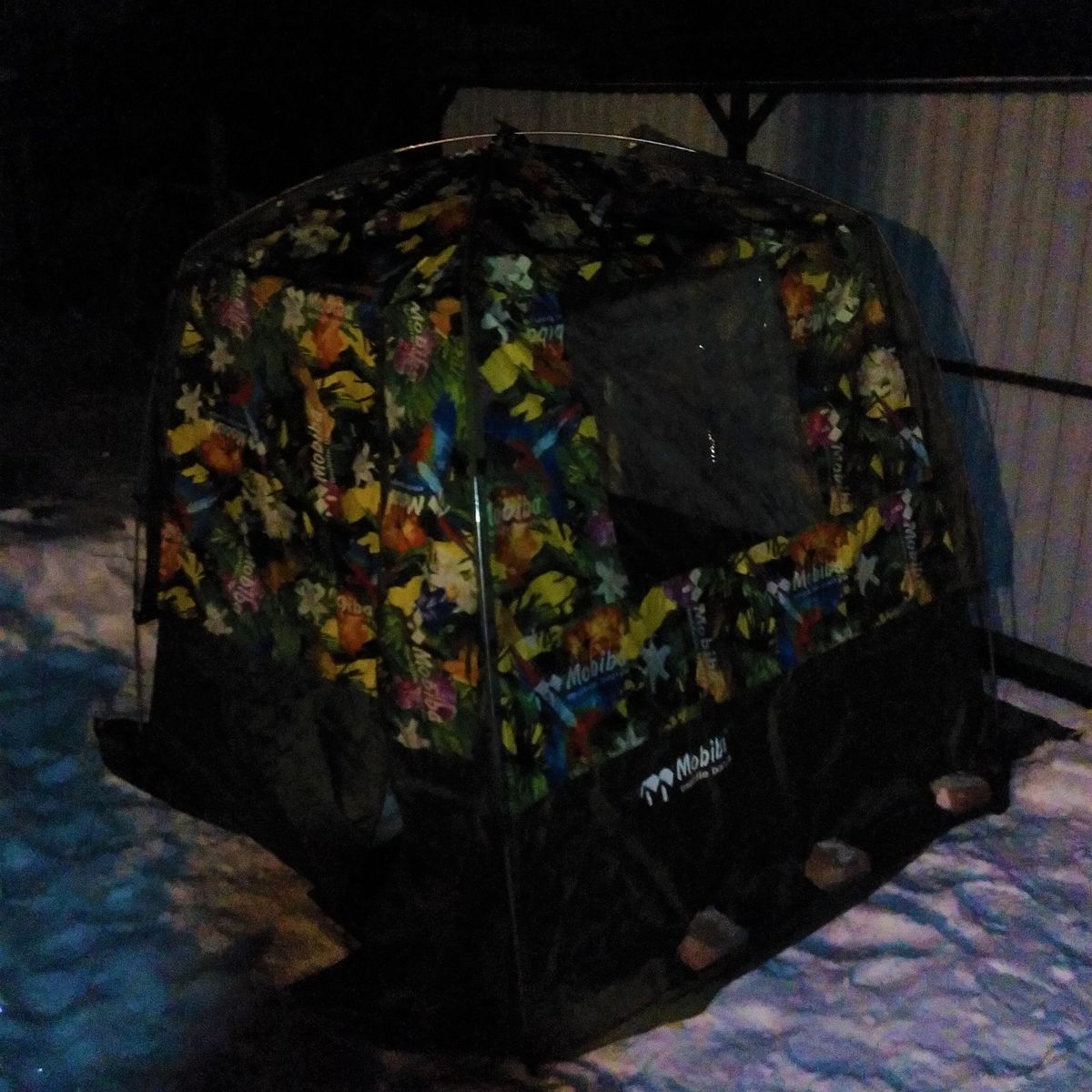 Вечером решено было провести испытания, однако никто из друзей не присоединился ко мне, что меня расстроило, но не остановило. Также меня не остановило то, что температура под вечер упала до – 20 и продолжала снижаться. Палатку ставил во дворе своего деревенского дома. Надо сказать, что установка показалось мне сложнее, чем писали в отзывах, но, наверное, это из-за темноты и мороза. Однако в одиночку поставить баню вообще не проблема. Собрать печь тоже оказалось довольно просто, несмотря на большое количество деталей. Наконец все установлено, дрова заложены, вода залита и печь готова к первому в своей жизни розжигу. Разожглась она прям очень хорошо и, со звуком маленького реактивного самолета, стала выходить на рабочий режим. Буквально минут через 5 в палатке стало сложно находиться в зимней одежде, я ушел в дом чтоб снять лишние вещи. Вернувшись увидел, что из раскрытого входа палатки валит клубами пар, даже немного испугался, но ничего страшного не произошло – просто вода закипела. Парился где-то с час, точнее просто сидел на скамеечке внутри, грелся и предавался философским размышлениям глядя на полную луну из окна Кайфандры. Разогнать печь до хороших банных кондиций получилось раза три, но ненадолго. Надо было заготовить больше дров и доливать воду. Но для такого мороза в однослойной палатке вполне можно было погреться и даже прогреться) Разбирать палатку после всех процедур было ужасно лениво, но полежав на диване, все-же решился, ибо не очень хотелось оставлять ее на таком морозе на ночь. К моему удивлению разобралось все очень быстро и без проблем.