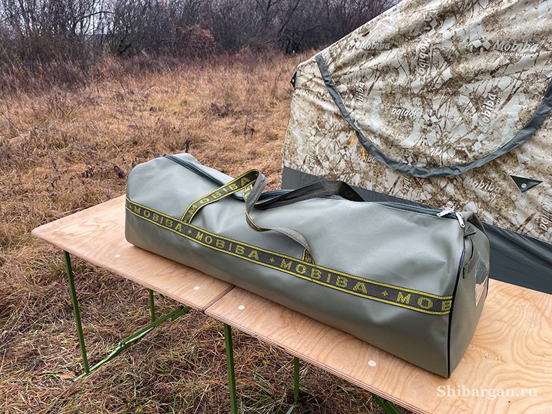Я отбросил эту идею, когда всё с лёгкостью уместилось (палатка, шпангоуты, изн, сумка с колышками) в сумку от МБ-103. Даже ещё осталось место для зимней укладки палатки.