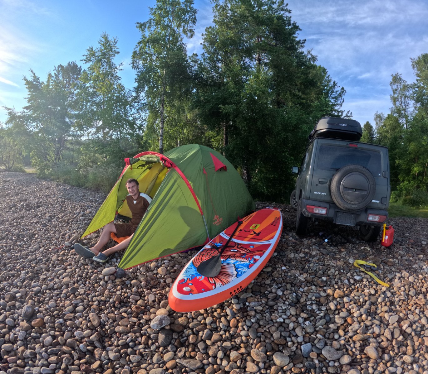 Квартиру снимали только во Владивостоке, по дороге ночевали в палатке или в машине. Джимник хоть и маленький, но вместительный, от двери до бардачка 185 см трансформируется в ровный пол+матрас - в троём спали хорошо(сетки на окна, вещи в бокс). С Улан-Удэ ещё и комплект дисков привезли. По трассе 90км\ч никого не обгоняя совсем)). В машинку влюбились и путешествие супер, хотя и волнительно было в первый раз. Страну немного посмотрели.