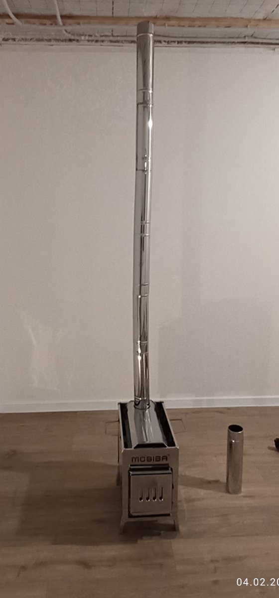 Охохо! На улице -5°С, штиль... как оно всё это дело заработалооо! В начале решили сжечь весь упаковочный штакетник. Его часа на два наверное хватило! Причём периодически, температура поднималась до 108ми градусов на уровне полка!!!