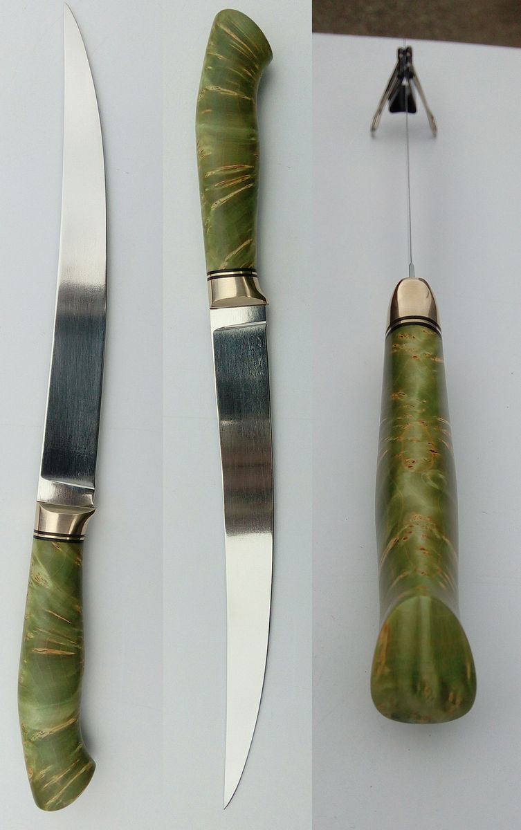 Бахыт, "поработать" этими точно не получиться, все раздарено. Тут ведь какое дело, сам совсем не охотник, чуть-чуть рыбак, поэтому моя "работа" ограничивается походной кухней и иногда строганием деревяшек. Ножи делаю иногда просто потому, что хочется. Стали использую нижней и средней ценовой категории (полосы или бланки), в основном нержавеющие, поэтому суперсвойств ждать не приходиться. Дома правда пытаюсь привить культ острого ножа.))