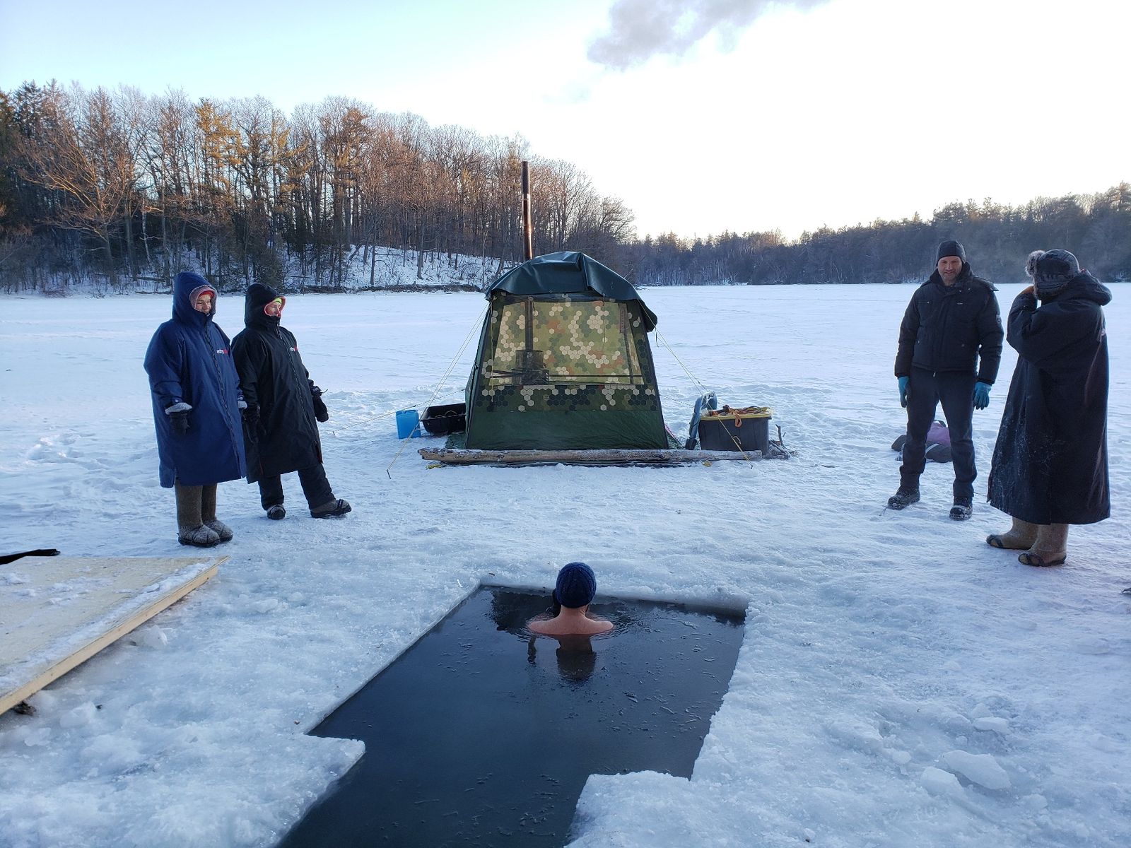 Сегодня ставили баню с приехавшими в домик рыбаками-реднеками (Дэйв и Рик), было душевно. Звездное небо, +14. Купался.