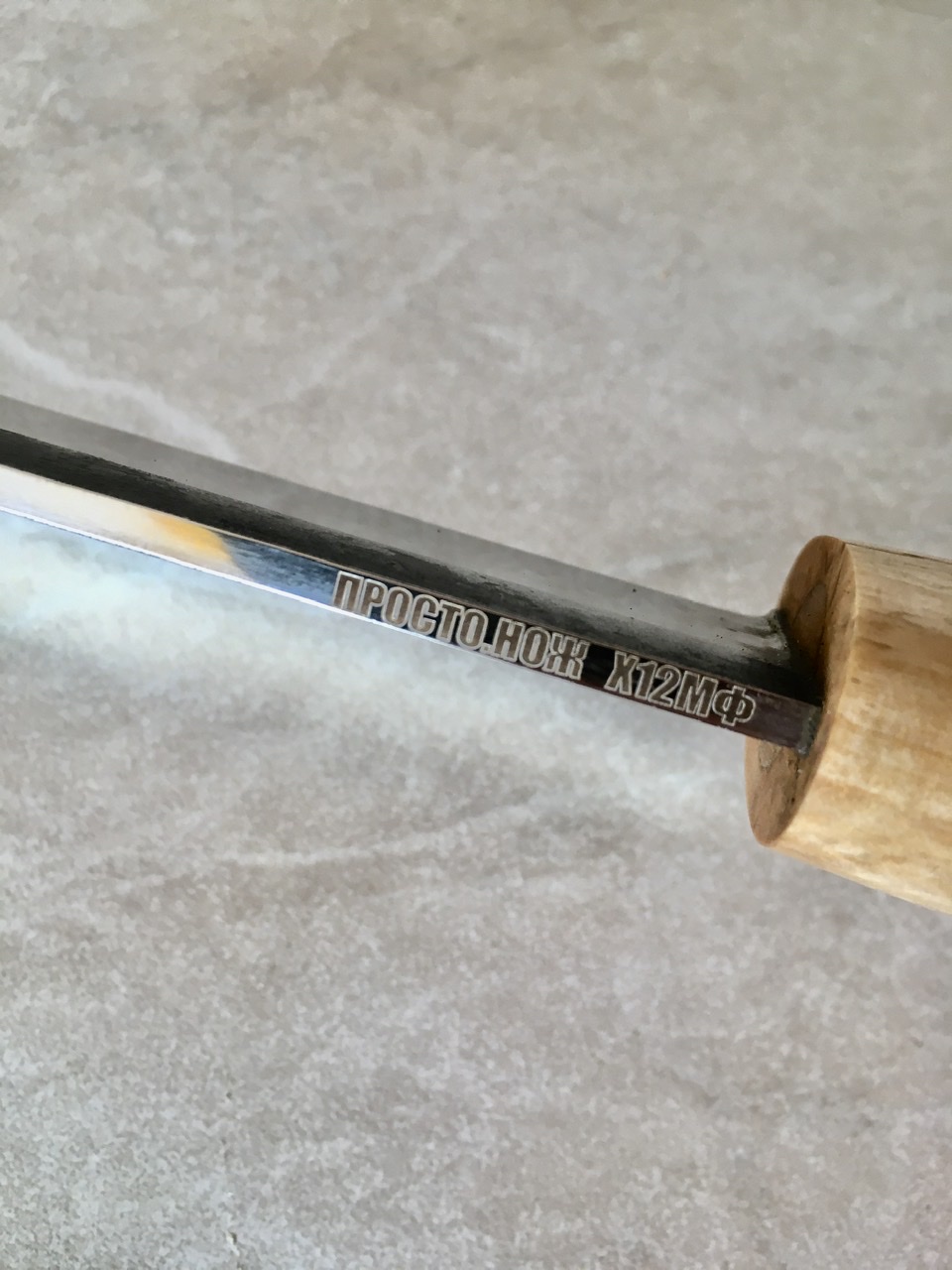 К стати заточку держит отлично. Еще ни разу не правил. Так и остался острым. Хотя я им чего только не резал ... и мясо и овощи и деревяхи строгал и даже полешки раскалывал (как говорят батонил). Только консервы не открывал)))
