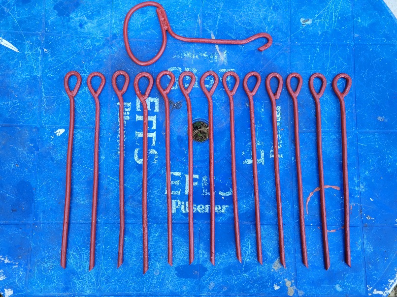 В комплекте с 15кой были 2набора пластиковых колышков. Работают нормально. К зиме с сыном за пару часов сделали комплект из проволоки 8мм(накусали на ближайшей заброшке).