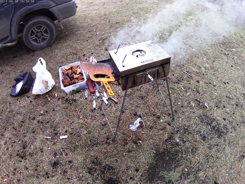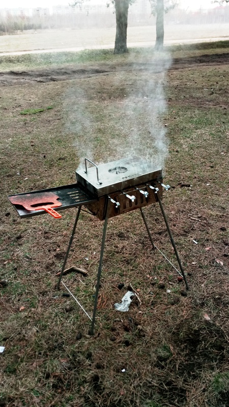 Заехал в гипермаркет и прямо за магазином все и зажарил)))