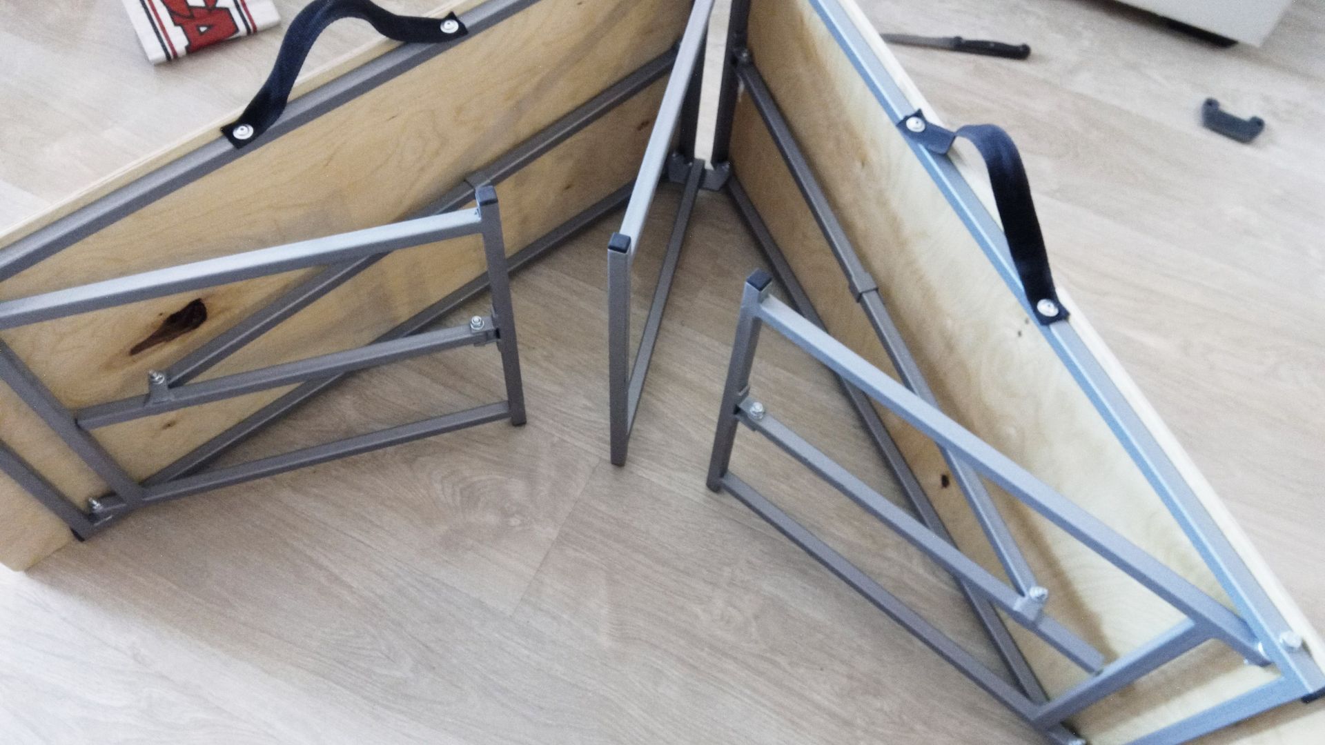 Размер полков 1200х490, высотой 500 мм, позволяет их устанавливать буквой «Г» для проработки тела вениками в полный рост и в некоторые моменты ещё и самому сбоку присесть. Верх собран всё из того-же материала «Полок Осина, сорт В», низ н/ж Ø 25 и 14 мм. Вес получился 13,85 кг. При перевозке ставил на торец к спинкам задних сидений.