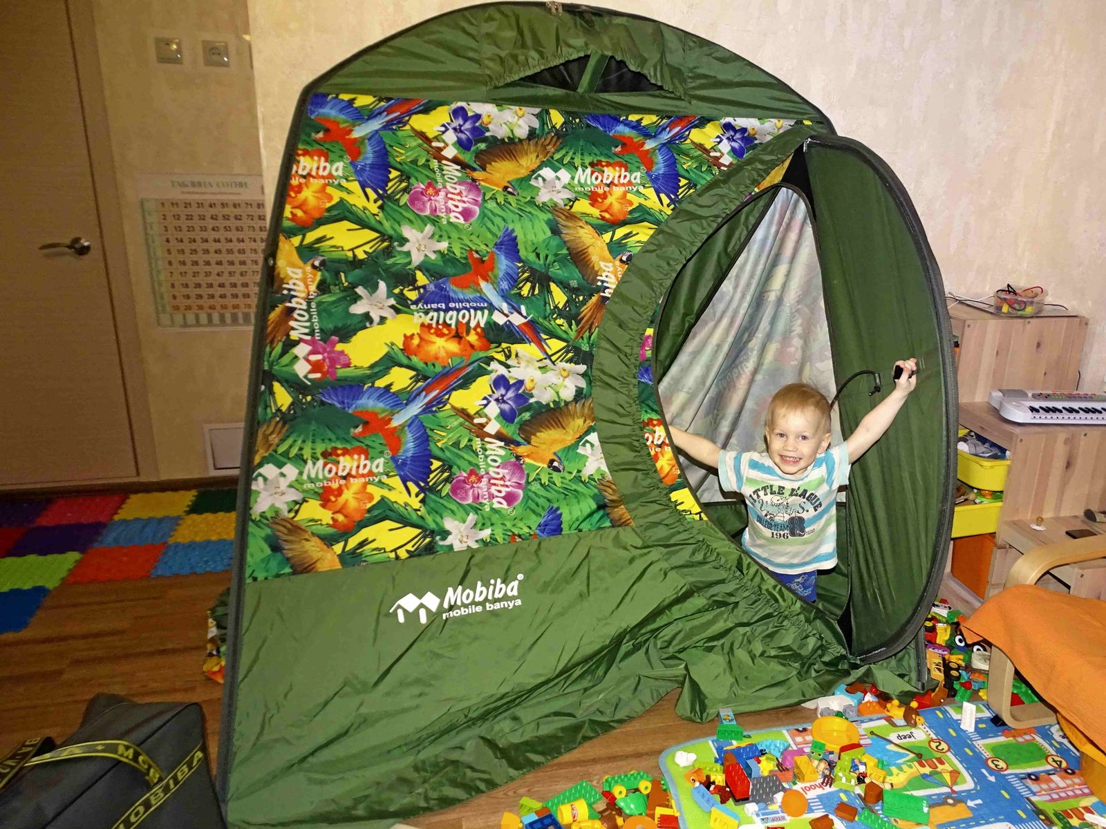 Старший сын первым расстегнул сумку, достал каркас и собрал дугу. После небольшой подсказки нашёл, куда её вставить и начал застёгивать. Уже всё умеет!))) Тут-то и выяснилось, что дуги не анодированные... но это ничего, руки легко отмыли! )))