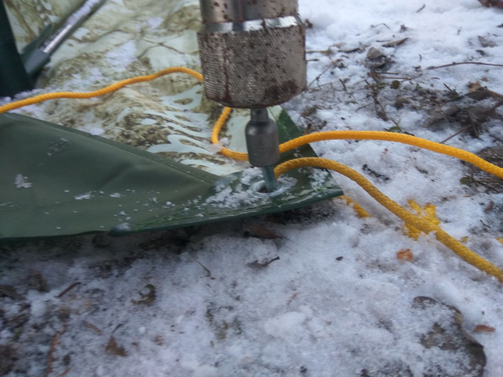 , а на грунт использую уже с шестигранной головкой и шайбой (для предотвращения соскальзывание веревки) или штыри 10мм ну и на крайний случай мешки с дополнительной приморозкой( это если мороз серьезный) Ну как то так!