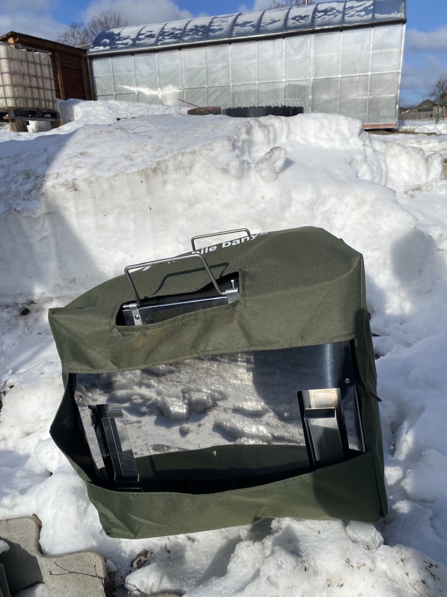 До мусорки не донес, получил совок для уборки золы в печи и заодно в бане подмести пойдёт.