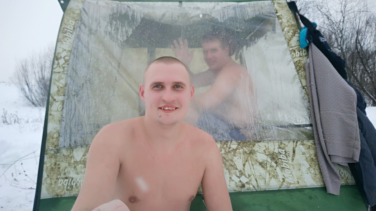 Нормальный выезд, Алексей! С таким набором можно легко жить несколько дней. Насколько же утеплённый пол добавляет уюта в палатку. Жаль что в проруби не искупались, но водой облиться и в снегу поваляться тоже можно. Я вот наоборот, искупался в проруби, но без Мобибы - работал в этот день, некогда было Мобибу ставить.