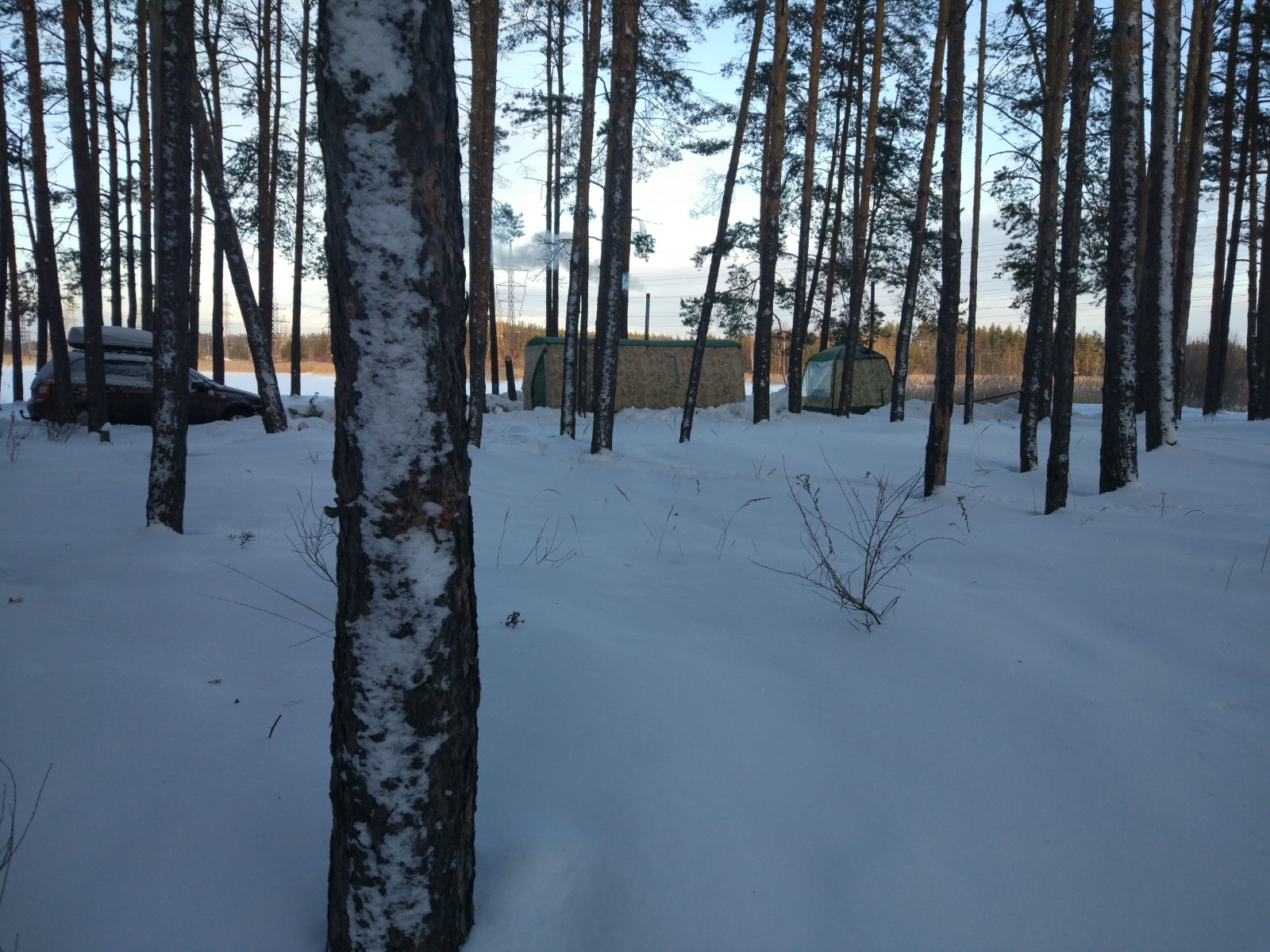 А этим фотографиям пару дней. Ездил один, видео не снимал. Приехал, насладился и уехал. Лёд более 15 см уже. Кстати, было тепло (-3) и тент я не стал на 10 накидывать.