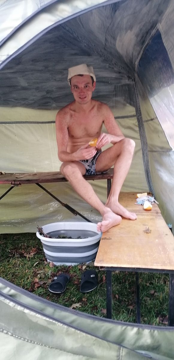 затопили мини КЦ-4, которая сильно удивила Диму! у него РБ-200 с КЦ-4, так он сказал, что для нуля градусов эта печь ему больше зашла для РБ-200, а он сталевар еще тот). Печь вышла на режим, мы веники в руки и паримся, а температура все жестче, пар все плотнее, мы хлестаем себя из последних сил и все , больше не возможно находится, бегом в воду а потом опять в парную, голова кругом, кайф!