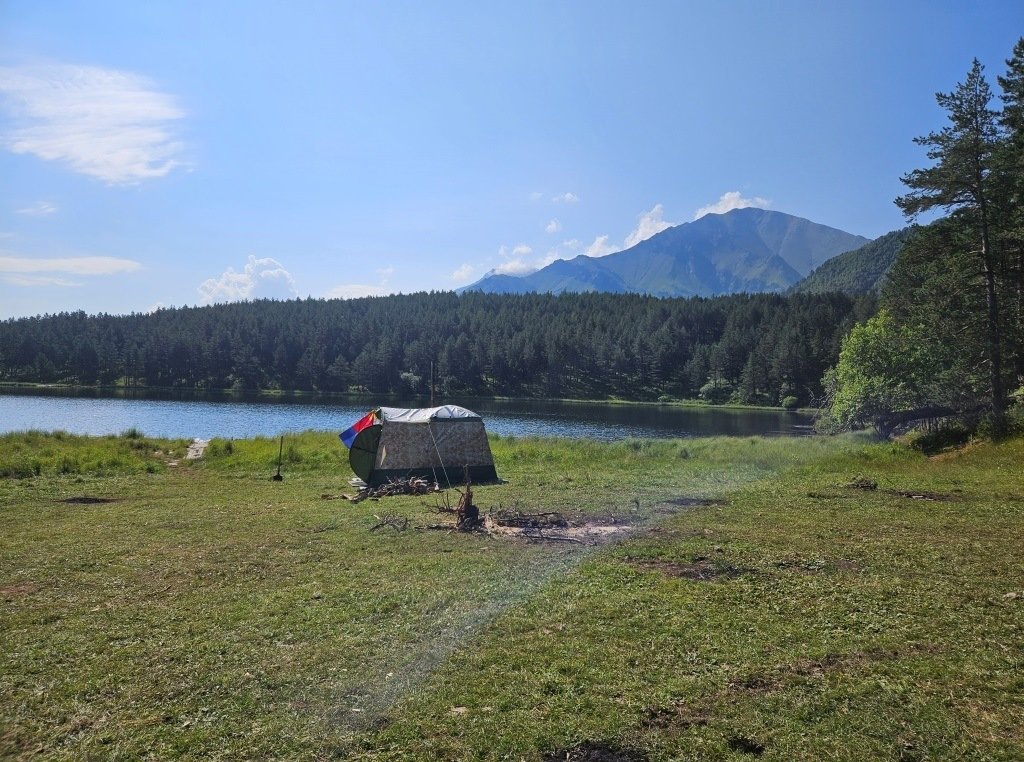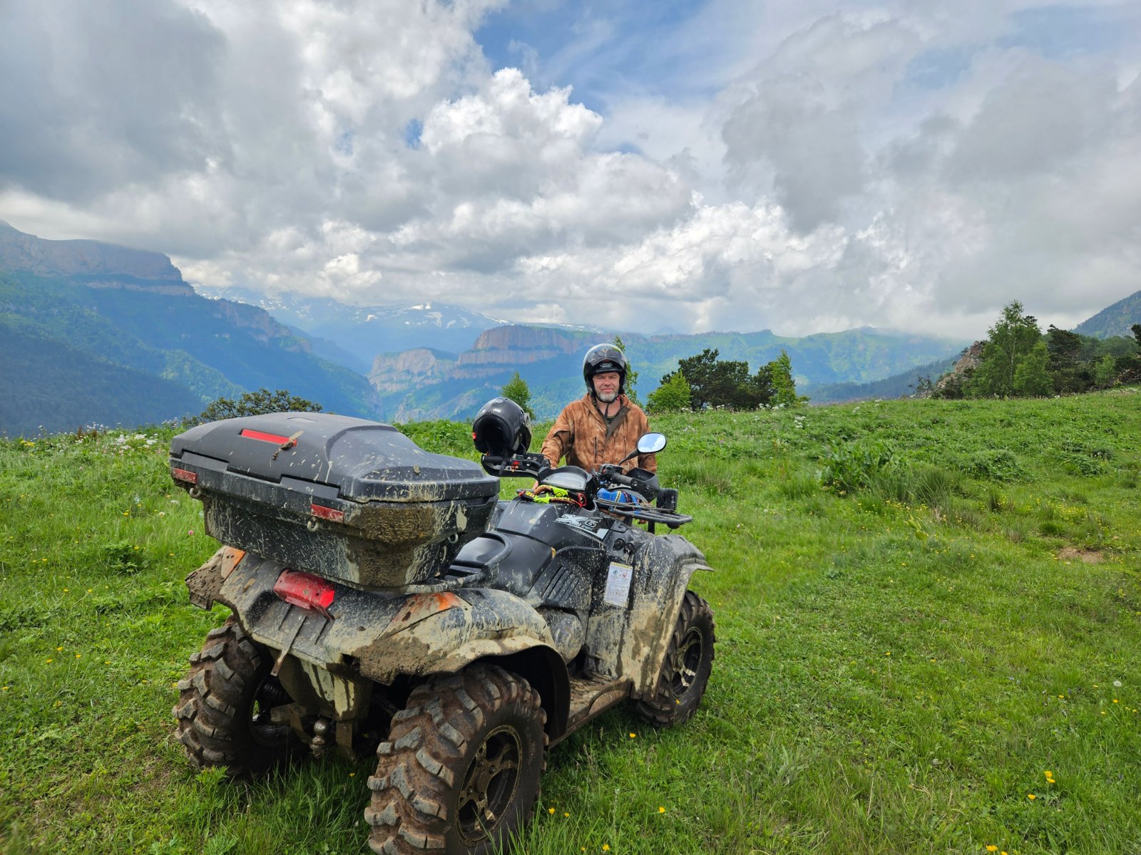 Первый был так сказать оценочный выезд в горы КЧР с квадриком. Жили на базе, там как и везде были стационарные мангалы. Но мы же со своим Шикардосом. И угля меньше надо, и мясо пожарить гораздо удобнее