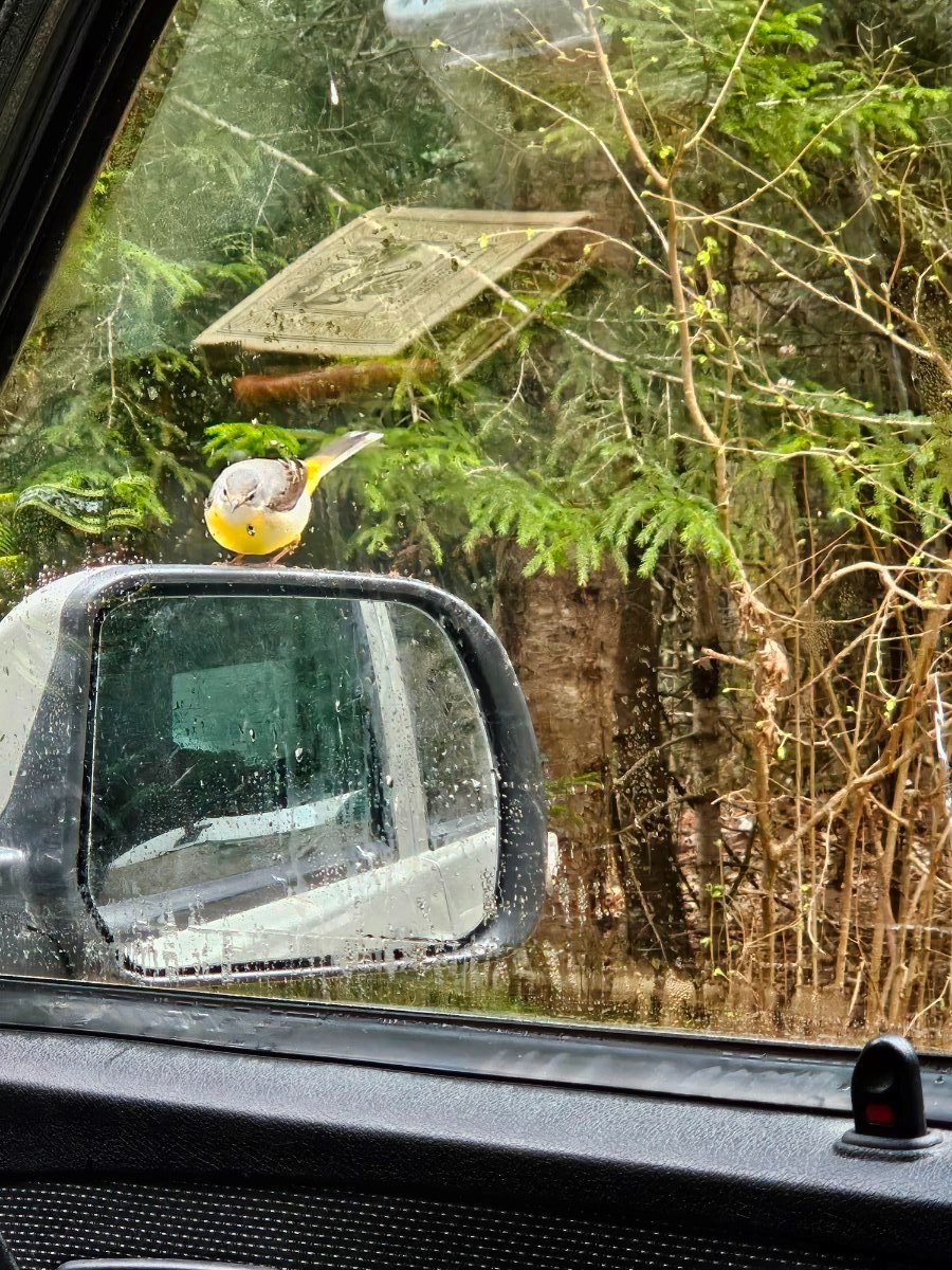 Ну и четыре дня подряд очень настойчиво ломилась в машину птичка – видно хотела пожить, и общалась с зеркалом уазика
