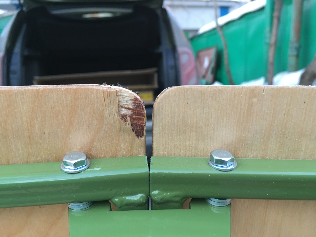 Чтото мне не везёт с доставками,в прошлый раз КЦ приехала замятая,но она то железная,всё легко отстучал резиновым молотком,а тут угол весь в труху,что бы его отпилить/сточить,надо фанеру снимать,так как он до рамы стал мягкий и мохрится!