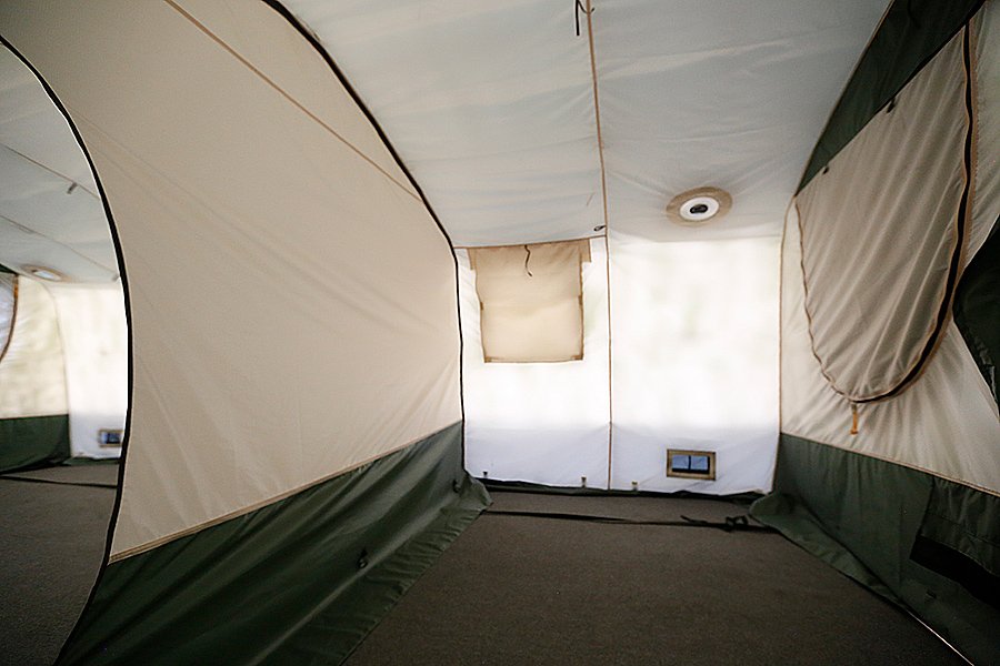 Два тента (внутренний и внешний) с хорошим натяжением, системой сквозной и приточной вентиляции