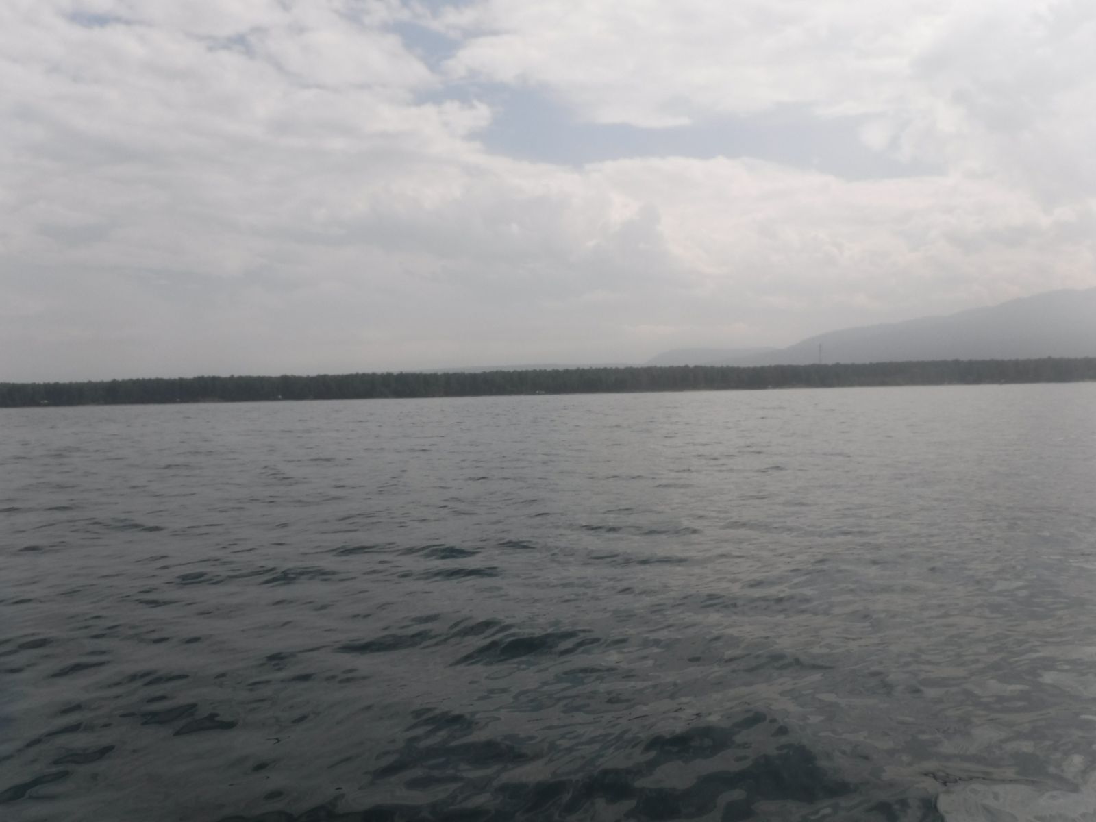 Всё время ветерок и волна 30-50 см. Новая лодочка 5-метровый кабот Братан Тунгуска с баллоном в 50 см нас очень порадовала. В то время, когда 3-4 метровые лодочки шлёпались и долбились на волнах, и от катания у пассажиров не было никакого удовольствия, мы спокойно, без ударов и шлепков мягко перекатывались по волнам.