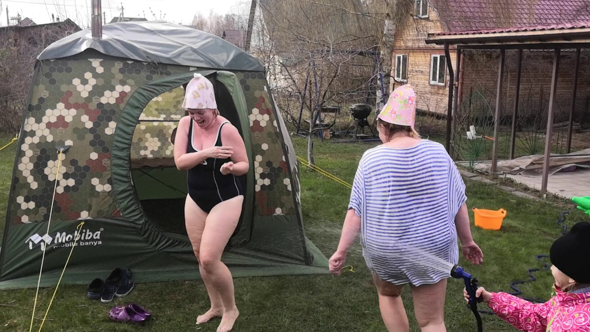 Ну, а потом, сценарий один и тот-же: люди, для которых холодная вода всегда была ужасом, плескались в ней и визжали как дети, обливаясь из душа, колодезной водой. Даже про застолье забыли))) P. S.