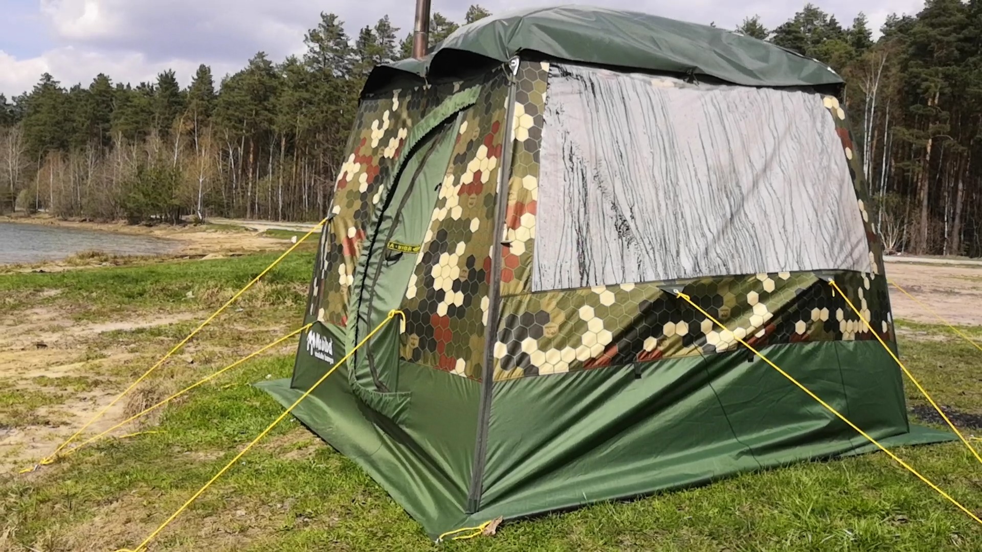 А чего каркасные растяжки не подвязал, раз уж ветер такой? Палатку так бы не шкондыбало.