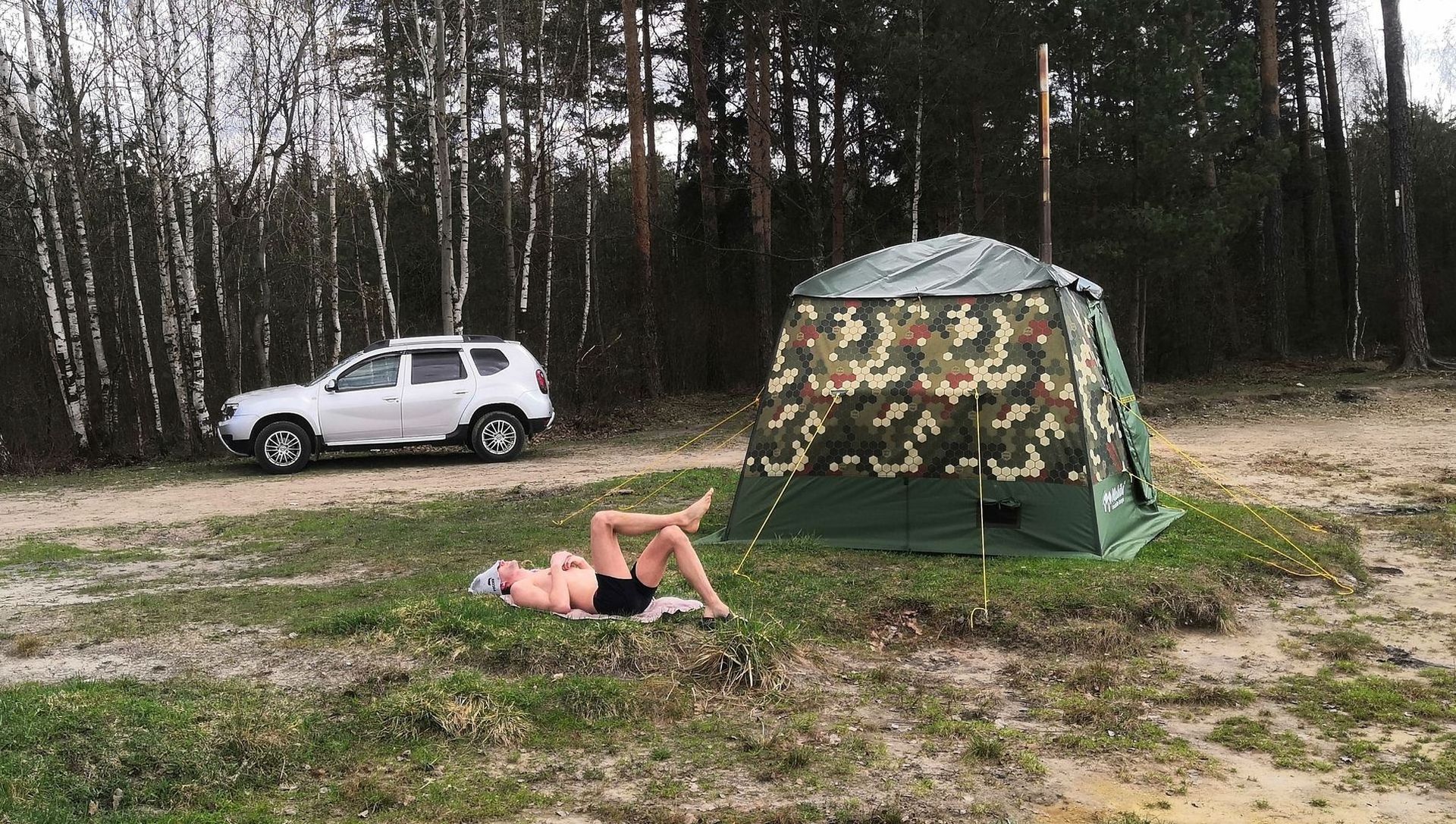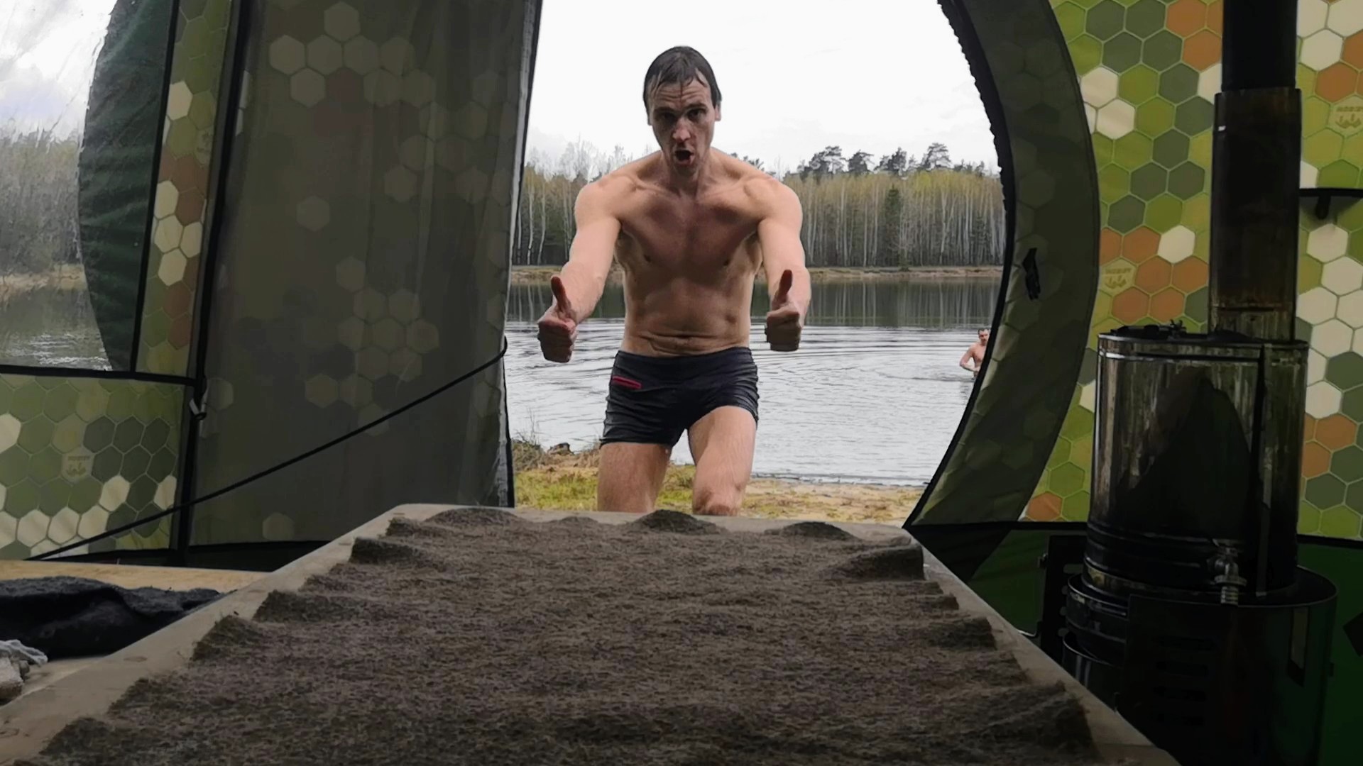 Но все таки мои товарищи, не были бы таковыми, если бы не держали слово. Наелись, напились и начали собираться париться. Я предупредил, что может быть тяжеловато. Но кого я могу испугать "походной" баней палаткой)))) тем более после употребления алкоголя... нам жеж море поколено!