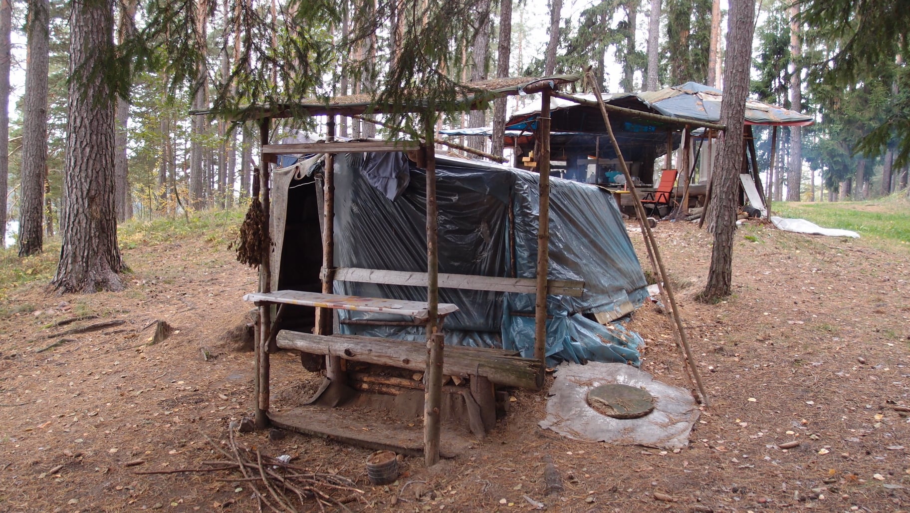 Есть у них и стационарная баня Но учитывая печальный опыт вандализма, самые ценные элементы печи разобраны и увезены на зиму в безопасное место. Несколько раз они и нас там парили. Очень душевно.