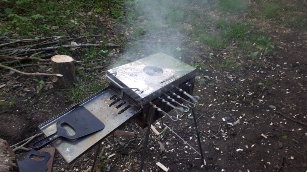 по шампурам - отболгарил не так давно по осени, летом еще обычные длинные были. но решил что надо доводить Шикардос до полного комплекта. Купил шампура из толстой нержавейки - чтобы и снутри мясо прожаривалось. естественно резал чтобы влазили по диагонали. Были опасения что изза короткой оставшейся ручки они будут сильно горячие - но не подтвердилось - во всяком случае зимой. также сделал совок их нержи, опахало положил туда и пистолетную горелку. все теперь есть.
