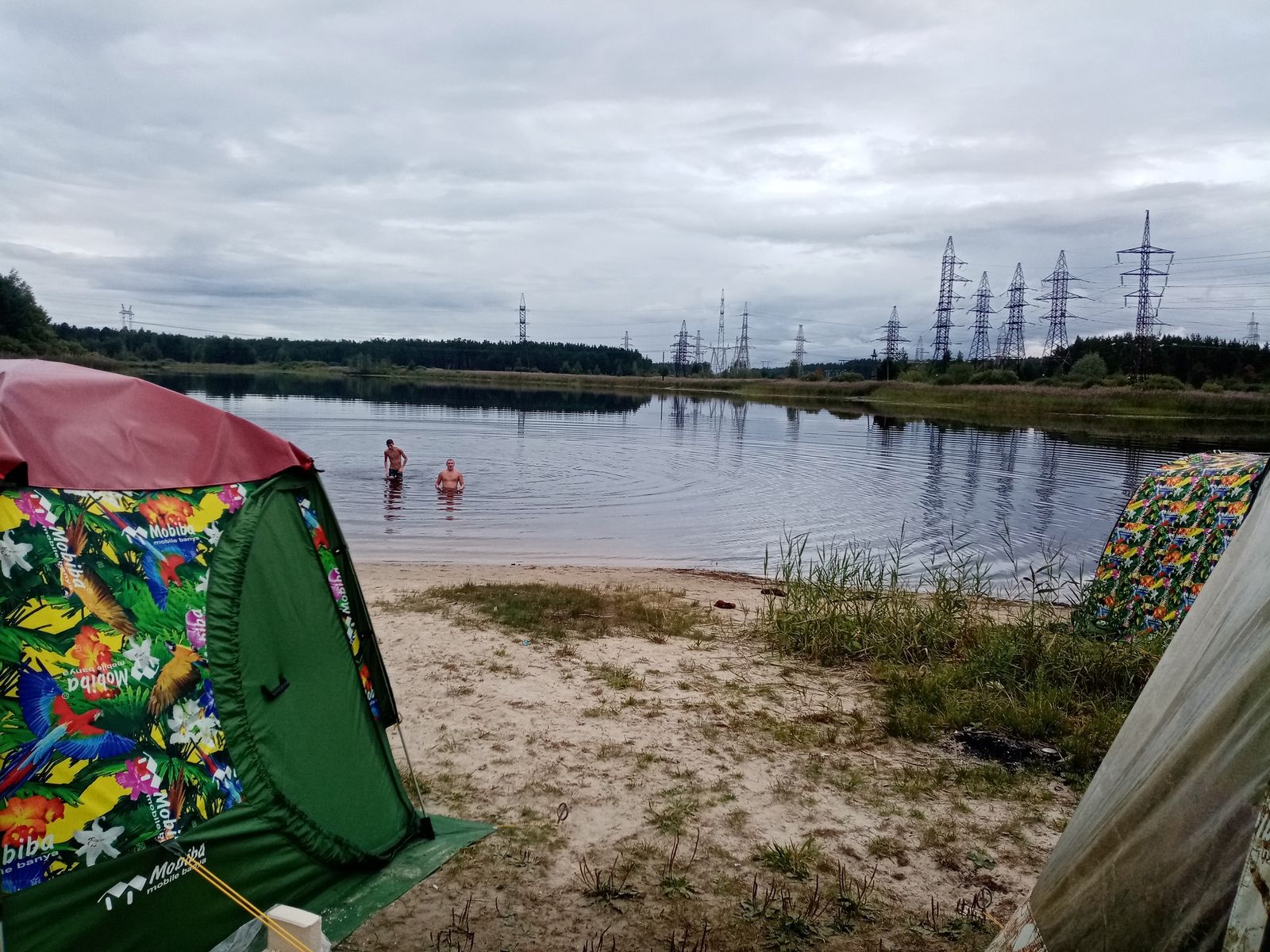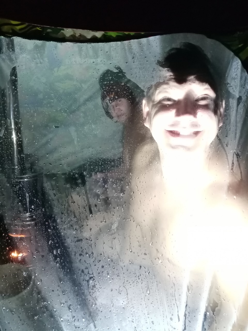 После осмотра с Алексеем Кайфандры в парке,захотелось потестить и сравнить с КЦ-3 в ИНИПИ-1. О чем предварительно и договорились. В субботу созвонившись с Алексеем встретились на озере,к вечеру уже когда стемнело, подъехал Артем. Пар КЦ-3 в ИНИПИ в принципе не сильно отличается от пара жиги в Кайфандре. Правда жига выдавала иногда пар даже жестче,80 градусов на 50 влажности и 90 на 45,приходилось к лавочке пригибаться а то уши сворачивались,мое мнение из за меньшего объема парилки,поднял руку махнул шапкой пару раз и жар уже на пол в ноги опустился,в ИНИНИ так не получиться. КЦ тоже давала жару температура доходила до 90 градусов,но пар был посуше и объем палатки больше. Кайфандра понравилась однозначно,нам с Татьяной на выезды и сплав на двоих то что нужно,будем брать по осени.