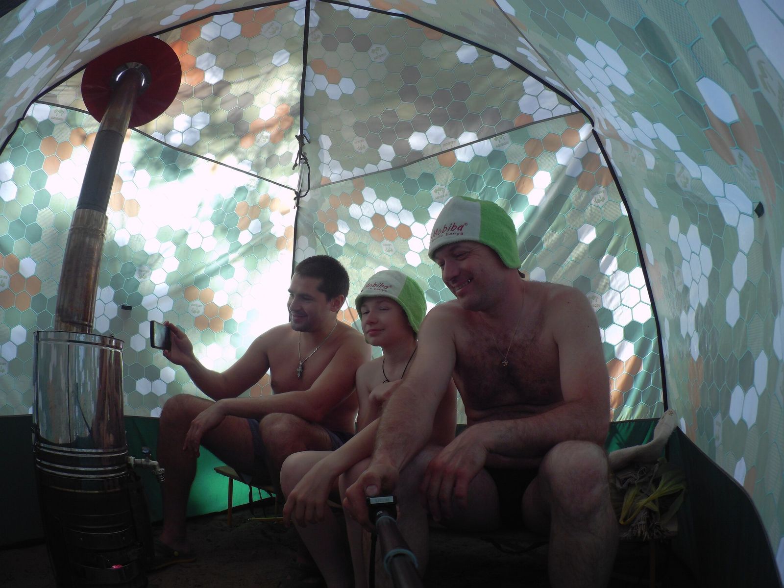 Потом снова пошли в баню... Помахали вениками, разогнали парок по палатке...