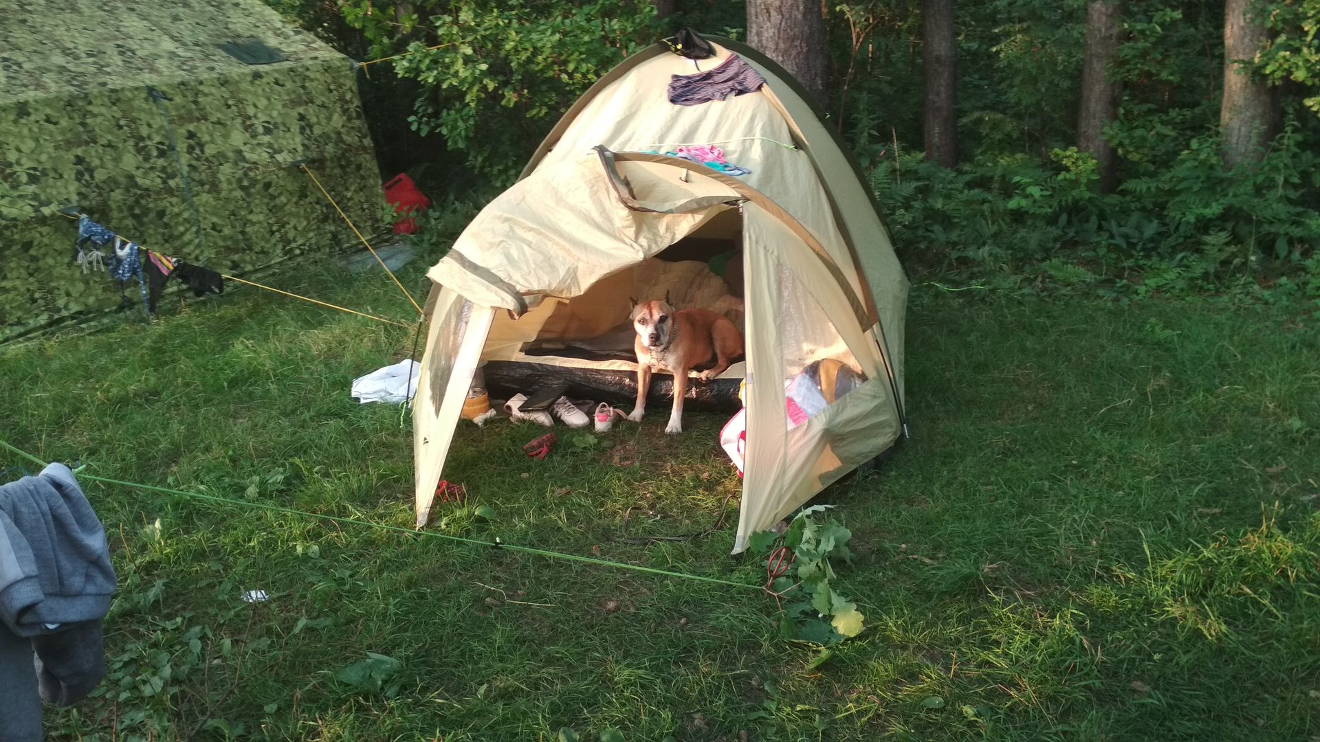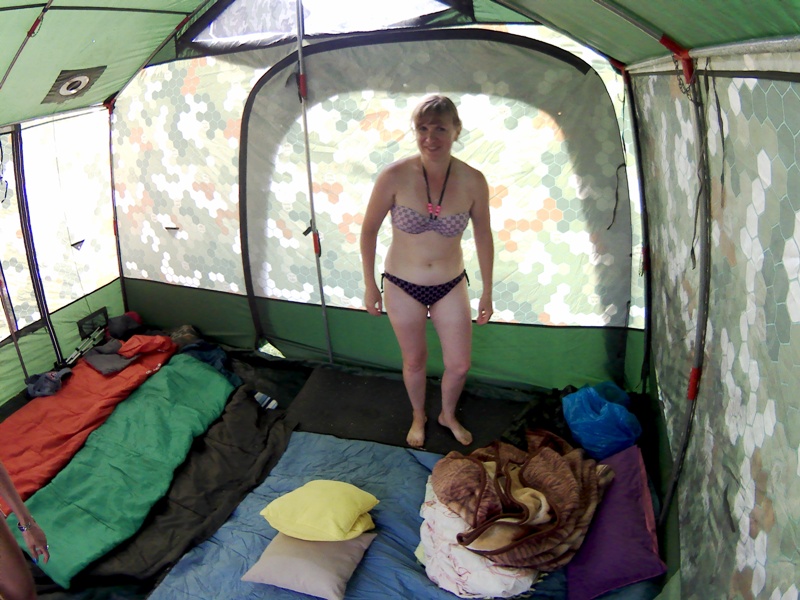 Ну в общем я с семьей прибыли первыми, наметили места для палаток, и начали строить свой домик