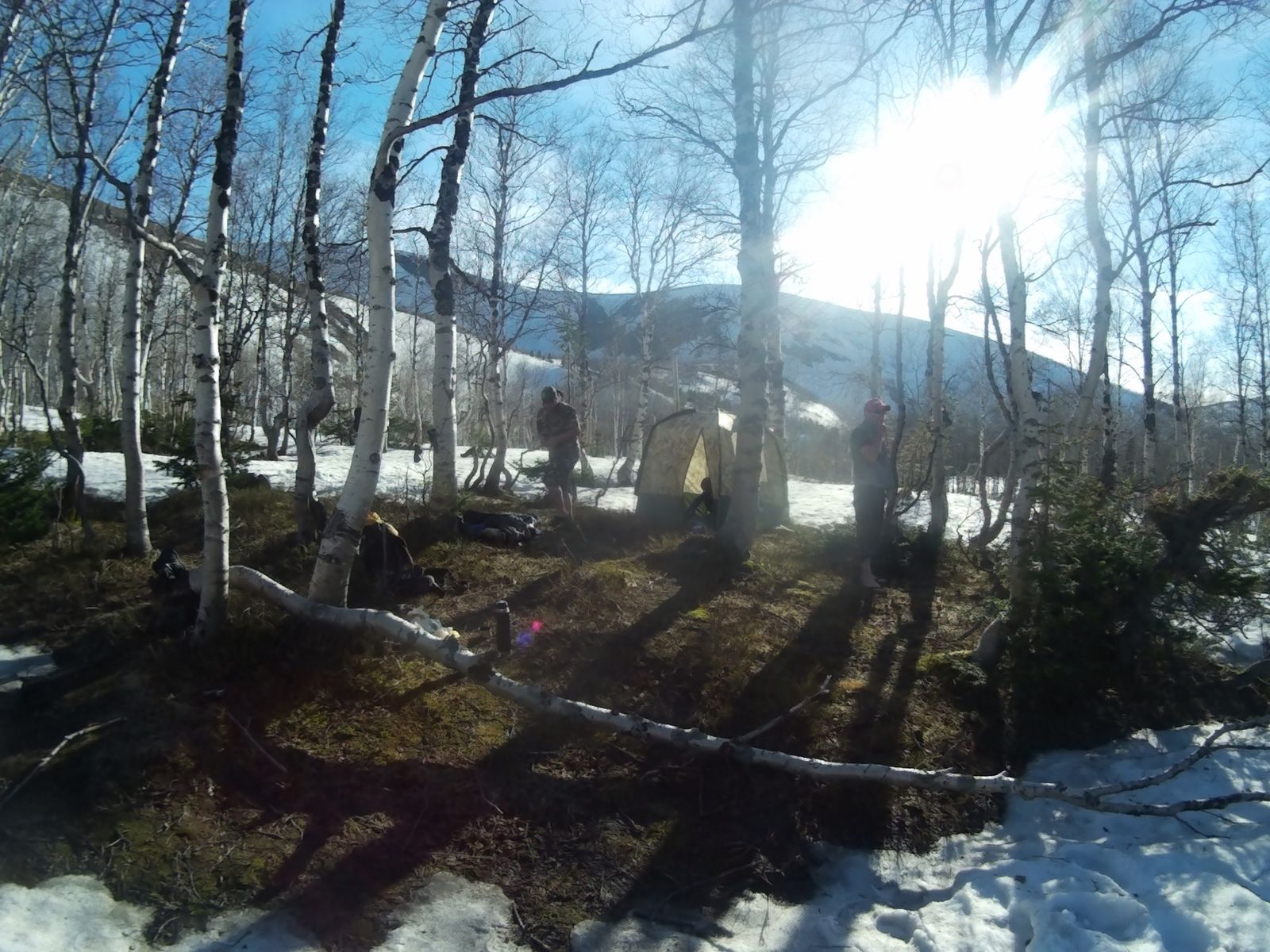 До места добрались уже поздно ночью. Разбили лагерь, попили чаю и разошлись по спальникам.