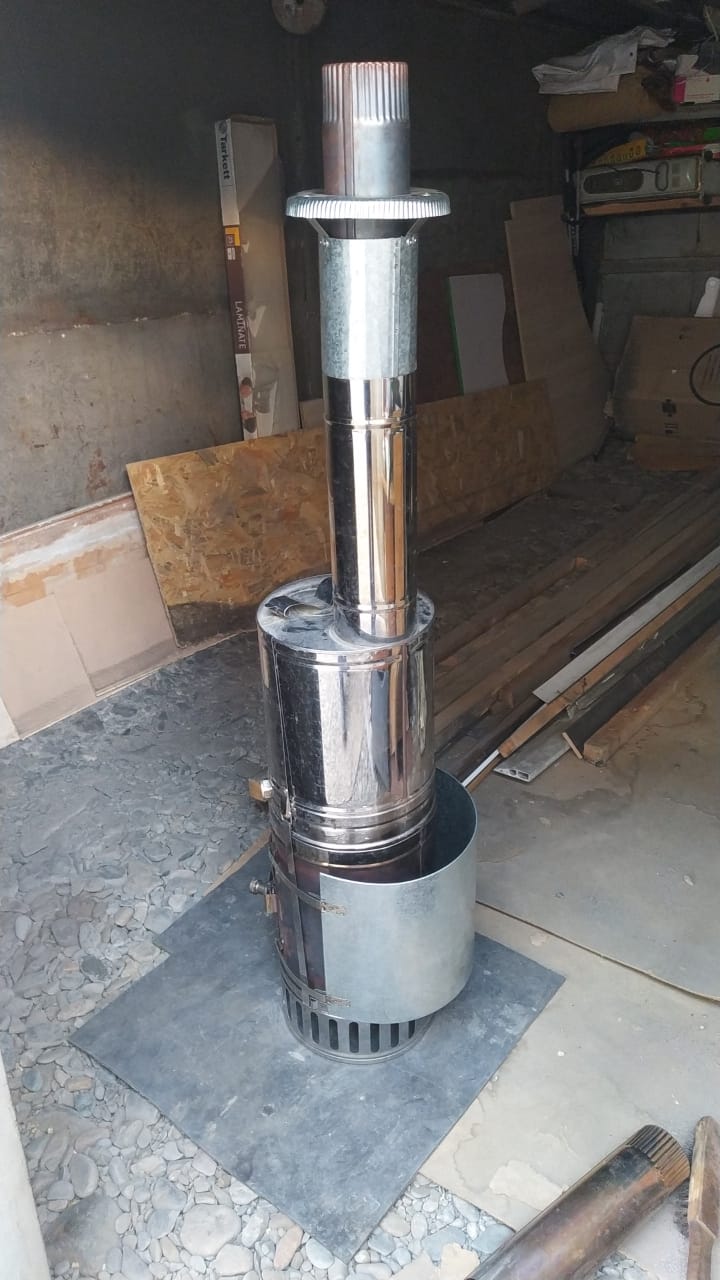 Выше трубу сделал сначала типа на всю и немного подпалил разделку, труба перегревается сильно и жар весь на разделку, поэтому и укоротил на половину.