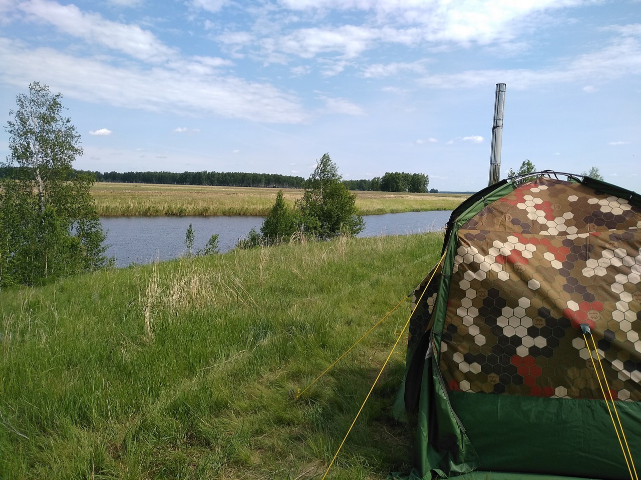 P,S, купите накидку несгораемую на сайте или сами сделайте - это позволит сберечь крышку палатки - и не будет огорчать дырками от сажи (это случится обязательно если не защитите крышу)