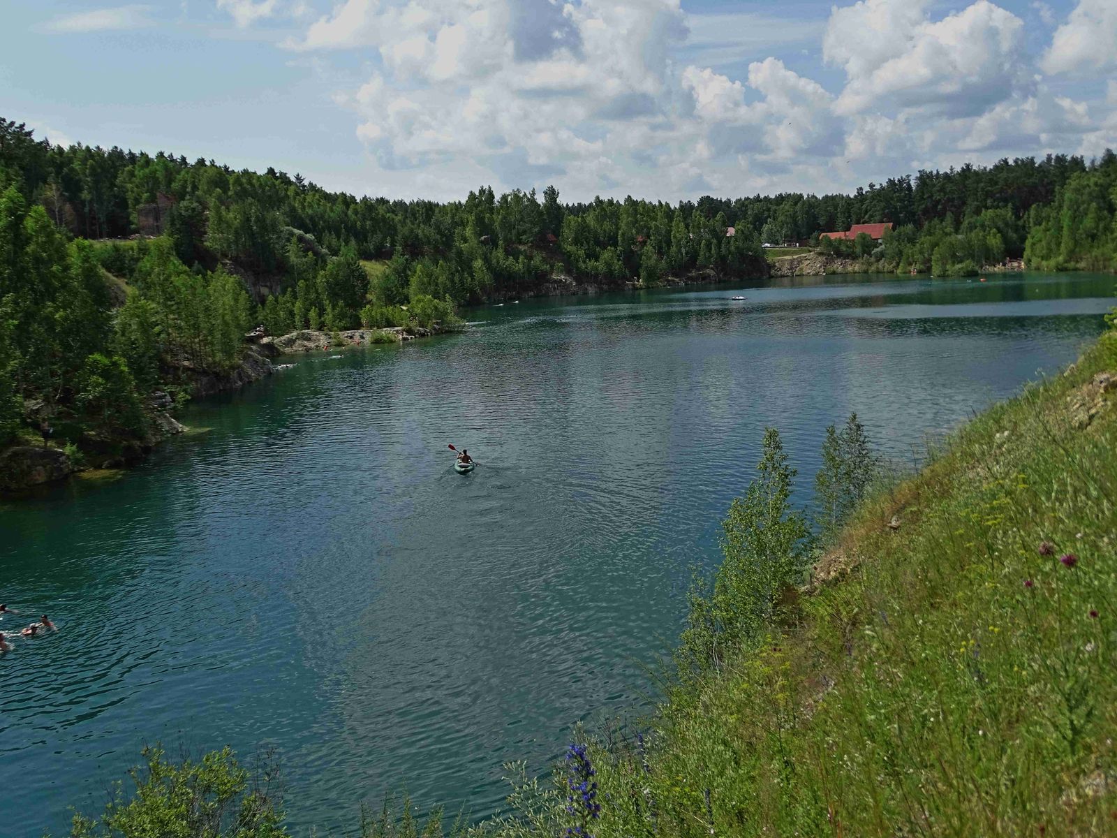 Карьер в районе Абрашино, где когда-то добывали мрамор, заполнился чистой грунтовой водой. Это едва ли не единственное место, где можно серьёзно позаниматься дайвингом в Новосибирской области. Арендатор этого водоёма и окрестностей зарабатывает именно на дайверах, поэтому жить возле воды в палатке непозволительно. Мы поставили палатки в кустах, но были замечены бдительными охранниками, которые объяснили что жить можно на верхней полке над карьером и ходить купаться, но вблизи воды сапсем никак низзя. Так что, несмотря на красоту, место пока непригодно для бантуризма. Нужно администрации разъяснить, что мы хорошие ))) Хоть на лодочке дали спокойно покататься: