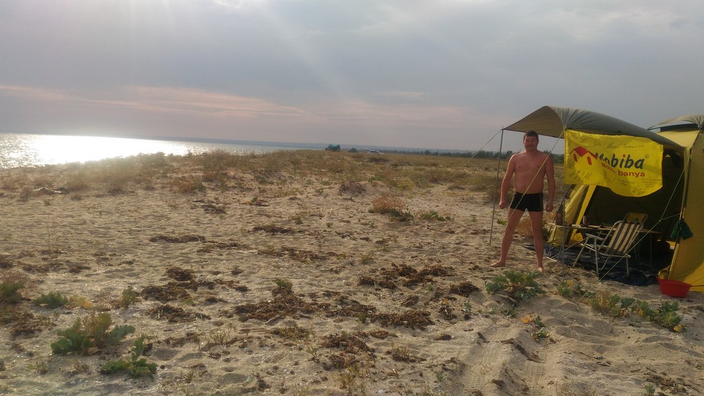Место выбрали как и в прошлом году, недалеко от н.п. Солнечногорское. Пляж конечно так себе, и заход в море не очень удобный, зато кроме нас ни кого.