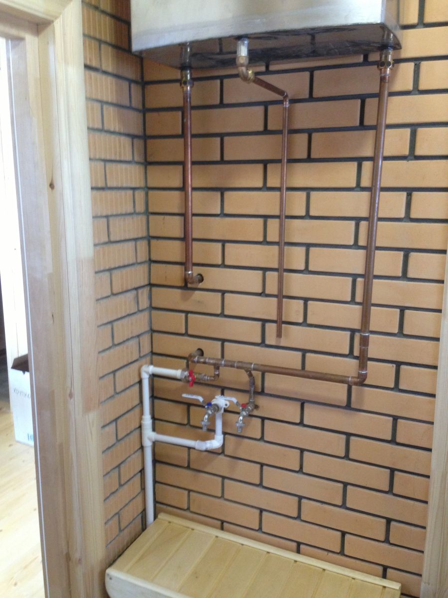 Обвязка труб выполнена из меди и установлен бак на 100л.