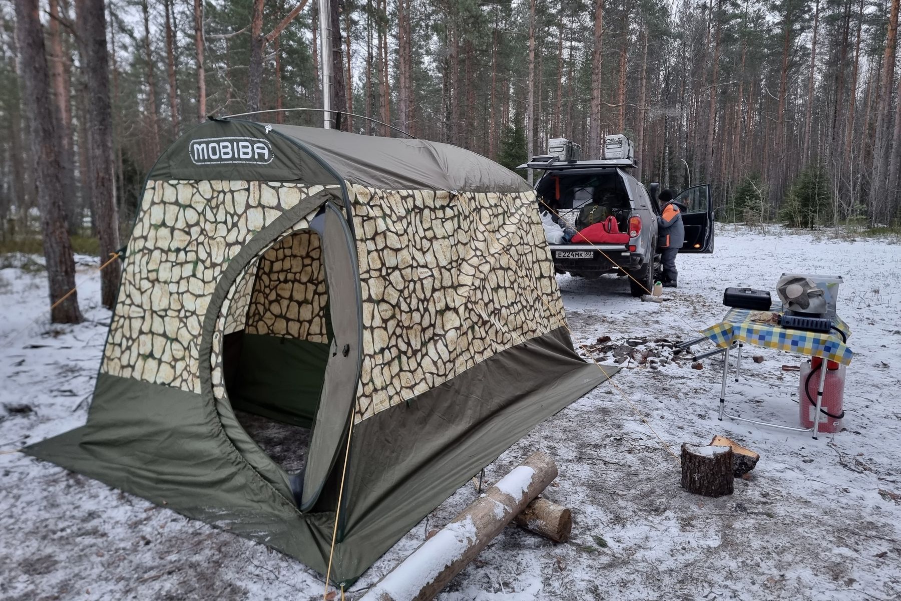 Здравствуйте! Давненько не был тут. 10 продолжает радовать, стараемся выезжать каждые выходные, эмоции не угасают. А еще заметил что когда просто еду куда то то всегда смотрю по сторам и думаю вот тут бы баньку поставить)) Прямо болезнь какая то! А еще ,блин ,начинаем задумываться о 15 ,хотя раньше казалось и 10 большая!!! Прикупили верхний тент но еще не разу не ставили ,температура не ниже -5,пока ждем. И скамнями бы попробовать но пока не доходят руки ! А так очень довольны ! Еще ведро складное прикупили дабы обливаться хол водой ,еслиб кто раньше сказал бы что и я и супруга будем в -5 обливаться на улице не поверил бы,а сейчас не представляем без этого)) Короче крутая штука это МОБИБА!
