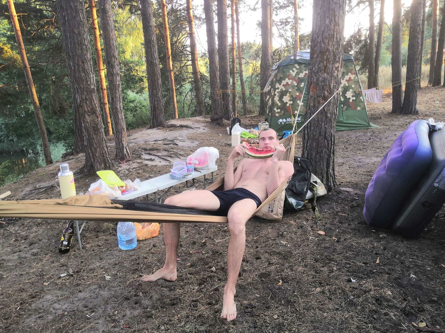 Ездил на прошлых выходных делать баньку. Теперь даже для двоих я беру МБ-15,как же в ней комфортно! Девчонки ночевали в 104 с Согрой,потому что ночью было всего +10. В сотый раз убеждаюсь,как же красиво палатки смотрятся среди зелени,можно просто смотреть и наслаждаться