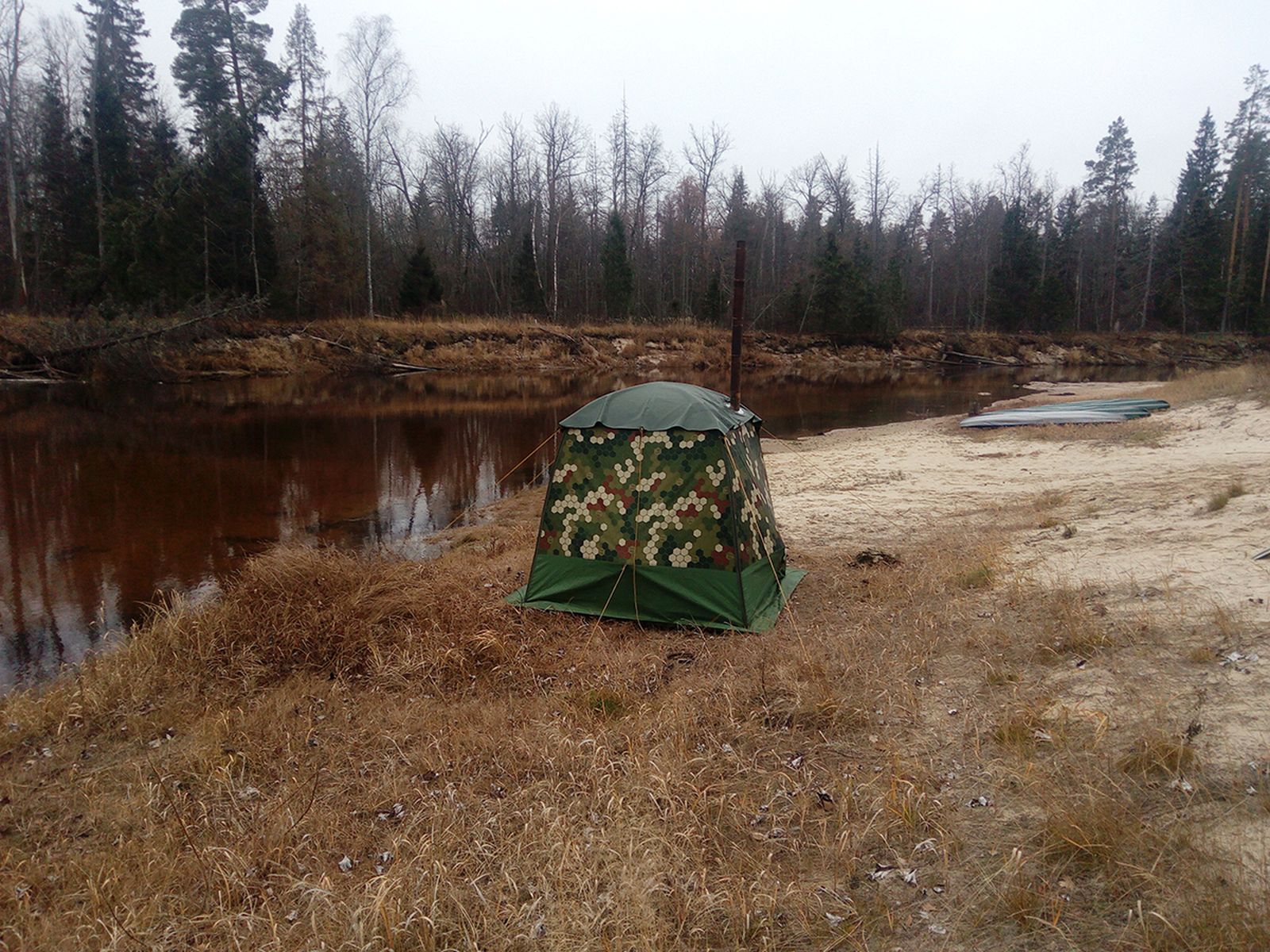 1. Накануне по быстрому сделал Согре укороченные ножки, не знаю это повлияло, или второй слой, или их совокупность, но внизу было спать теплее, чем в прошлом году. 2. Не ленитесь, пользуйтесь ИЗН или их заменителями. 2 минуты, и пробоин в новеньком ТН-15 могло бы и не быть, все они улеглись в площадь покрытия ИЗН-15. До следующего выезда обязательно что-нибудь наколхожу. 3. Для сплавов в данном формате будет удобнее упаковывать МБ-15 и ТН-15 в разные сумки, есть шансы, что они поместятся под борта Тайменя, а не просто развалятся по барски по середине в одной сумке. Хорошо, что нам «багаж» не нужно было экономить. Мы ведь даже дрова для бани везли с собой из города, по мешку на вечер.)) 4. ТН-15 – суперизделие, правда пока не удалось поставить ее без складок. Маленькая ложка дегтя. Очень расстраивают подобные картины. Прям бесят. Хоть Палыч и говорит, что природа свое возьмет, только слишком долго она будет перерабатывать подобные артефакты. Отдыхайте с удовольствие и умом, берегите природу.