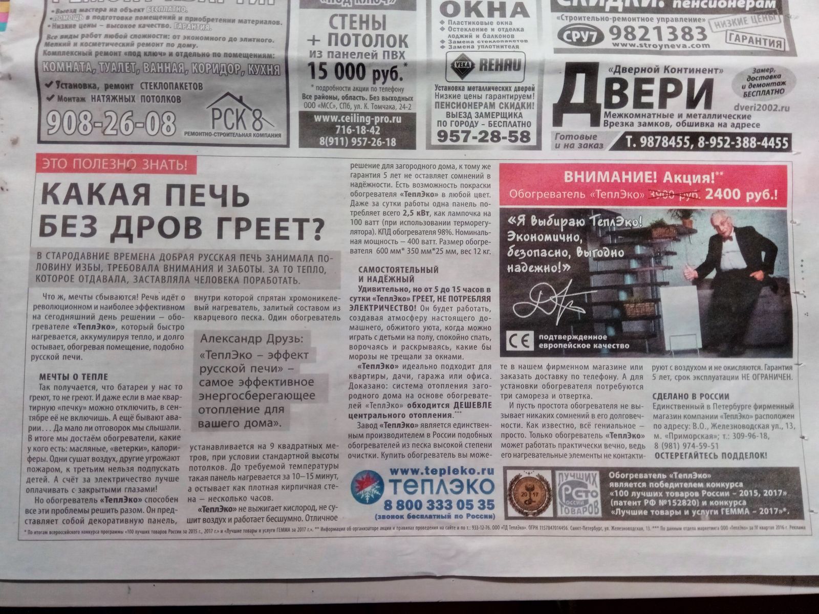 Ну не знаю... Как то противоречат их обещания закону сохранения энергии))) 400 ватт...он либо слабо греть будет, либо потреблять гораздо больше. Хочется верить в чудеса, но чем старше становишься меньше в них верится. Вот сомневаюсь я очень...)))Александр Петрович писал(а):glu_iv