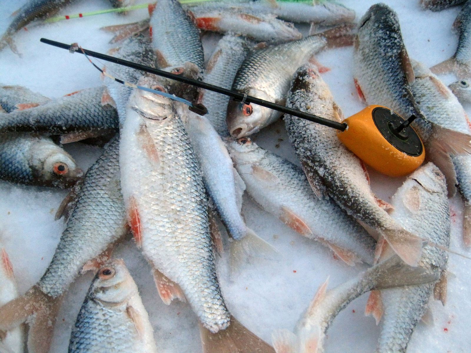 Я, остался на сорожке. Быстренько нашел локальную ямку. С которой и собирал дальше рыбку. Скакать в поисках больше не надо. Отзывалась на игру. Прикормка почти ни какой роли оказывала. Пока трясешь - рыбка активна. Отошел от лунки, на покушать и пообщаться, - потом минут десять рыбку собираешь и уговариваешь. Дальше опять лифт. Сорога мерная. Мелкой почти не было. Уклейки и ершики единичны. Ну и окуньков съедобных таки тоже зацепил с десяток.