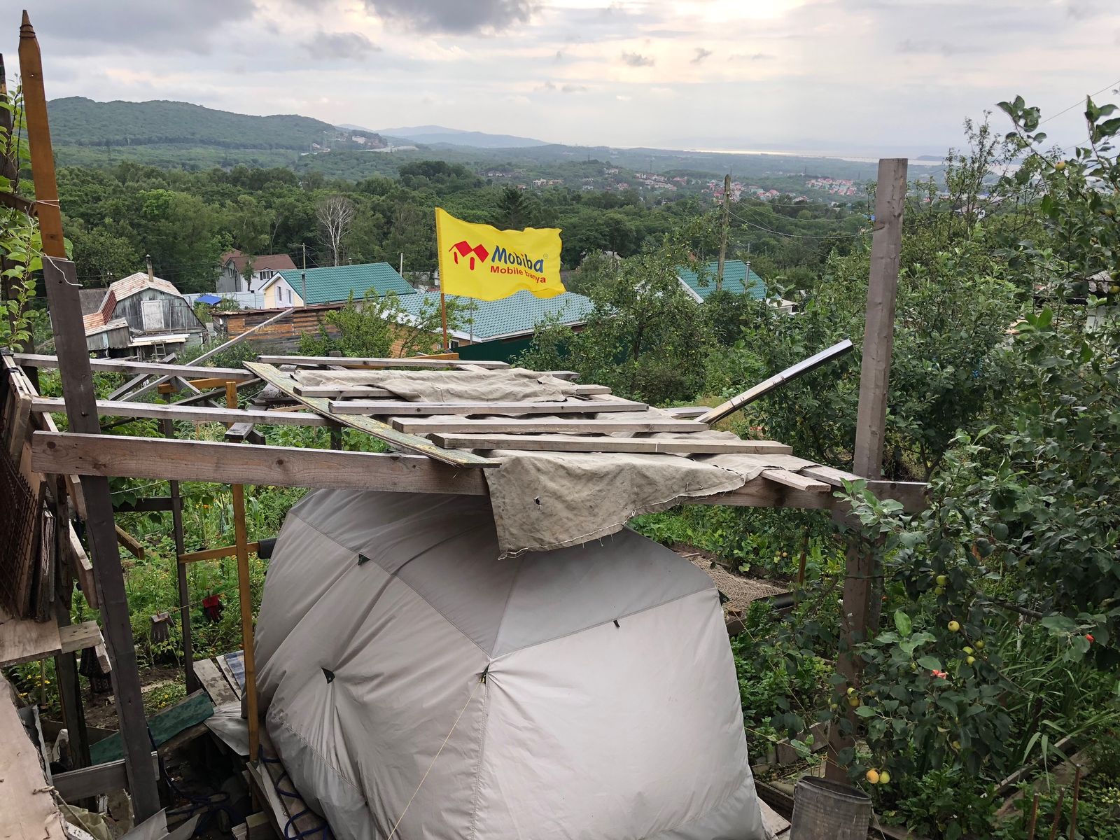 Как раз дул легкий приятный ветерок, и флаг гордо реял над моей Мобибой весь день и до самого утра.