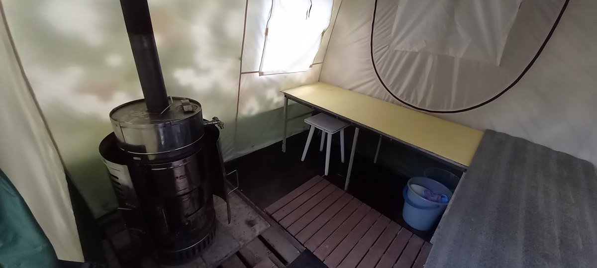 Со внутренним тентом проблем не возникло, от слова совсем, а вот с внешним пришлось повозиться, все же одному дюже не сподручно. Но это оценка только в сравнении с монтажом пятнашки, не более. Про устанавливающих 63-ю и 75-ю серию в одну каску вполне солидарен с Горьким: "Безумству храбрых поем мы славу!" И вот стоИт красавица, глаз радует. Подергал, потряс, как вкопанная. Решил ветровые оттяжки не устанавливать, крайне слабо верится, что на нее хоть как-то повлияет ветровая нагрузка. Печь и внутреннее убранство установить не удалось, позвонил заказчик, пришлось обратно в цех уехать. Так что, как грится, продолжение следует..